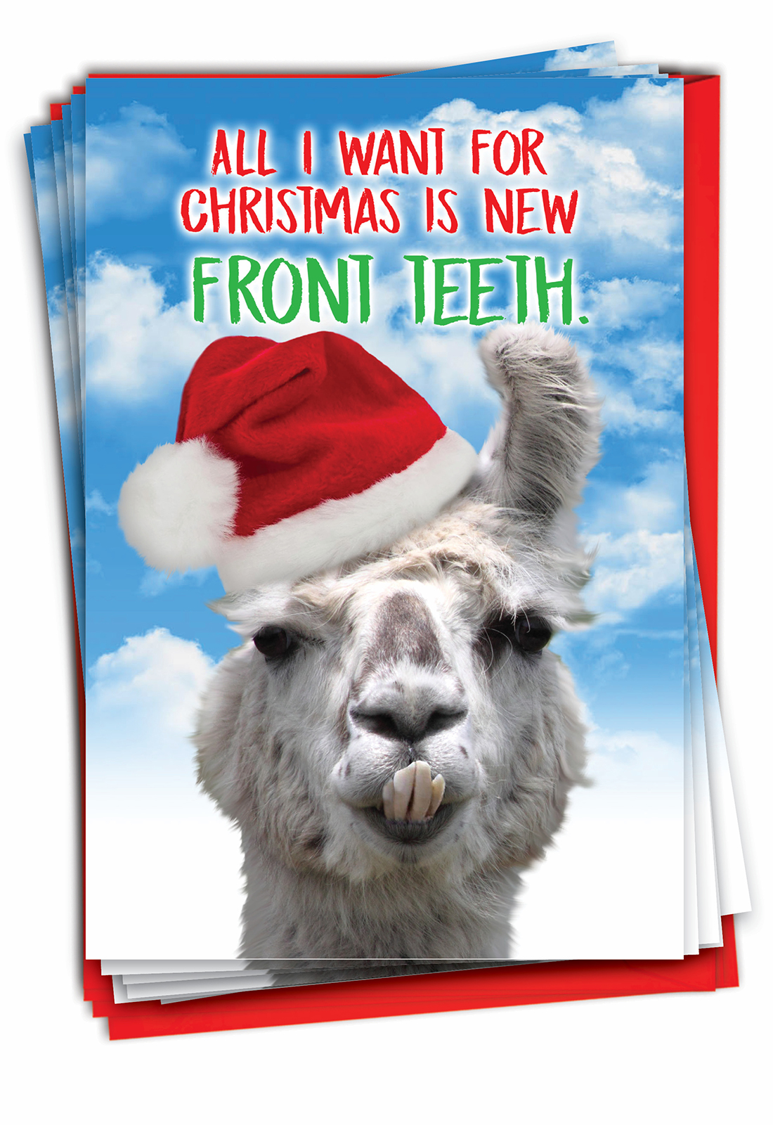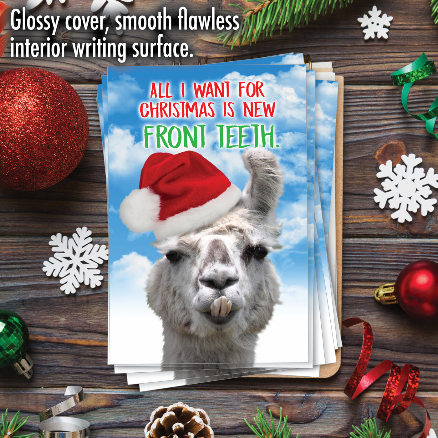 Llama Front Teeth - Creative Merry Christmas Box of 12 Cards, Wholesale