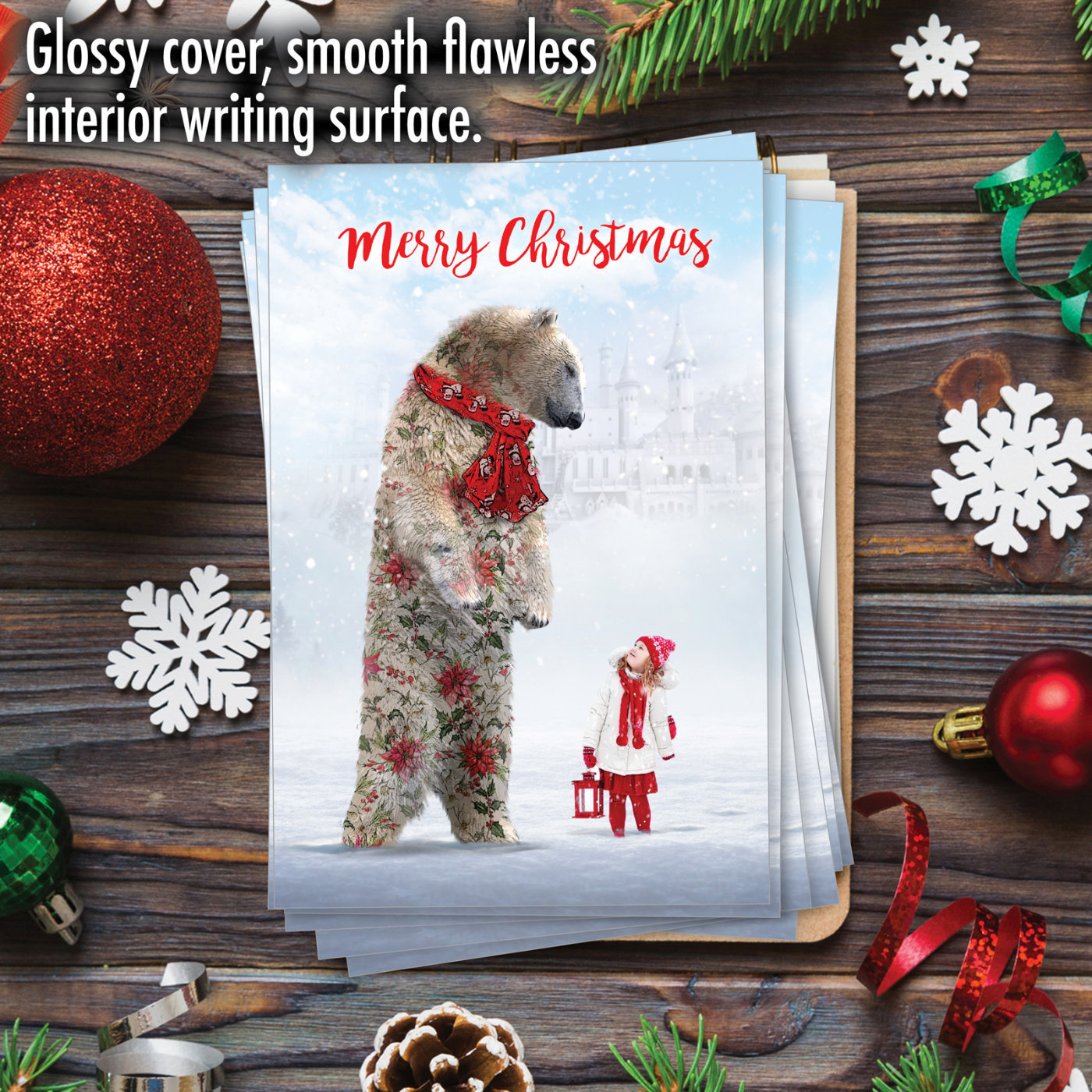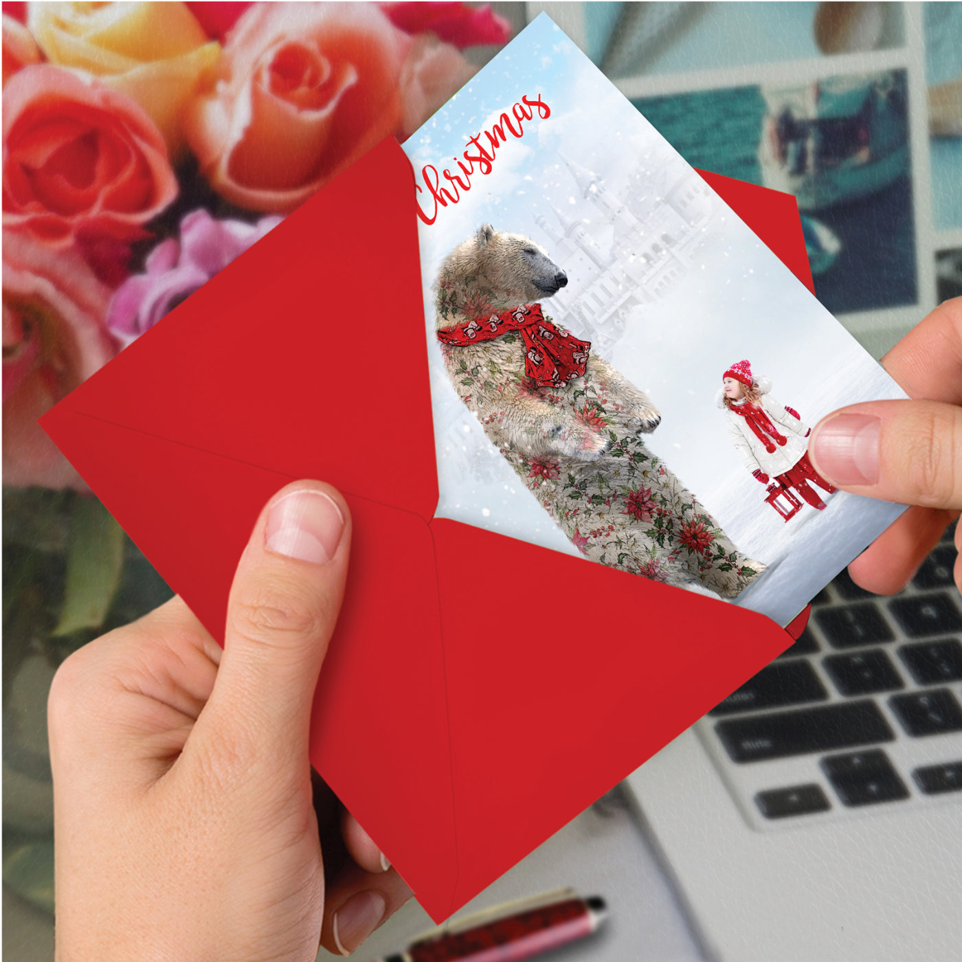 Patterned Animals - Bear - Creative Merry Christmas Box of 12 Cards, Wholesale