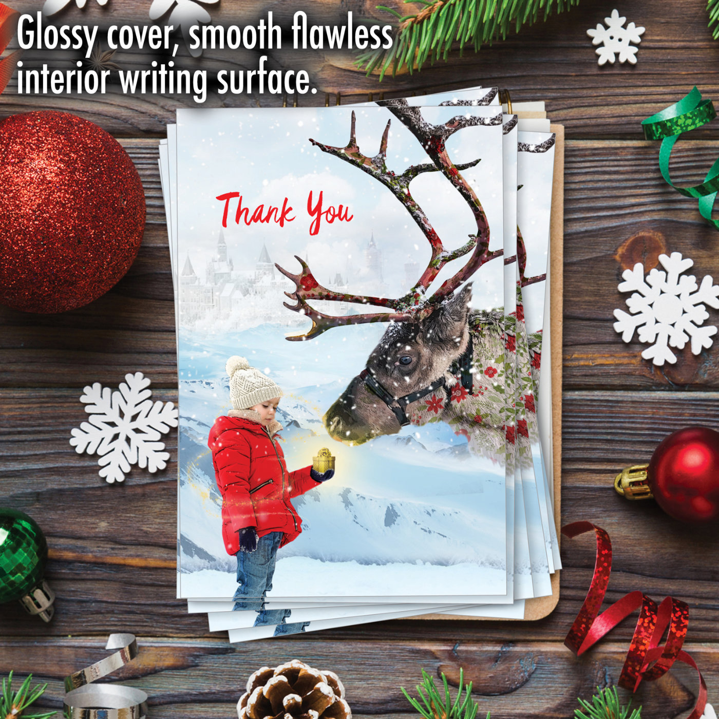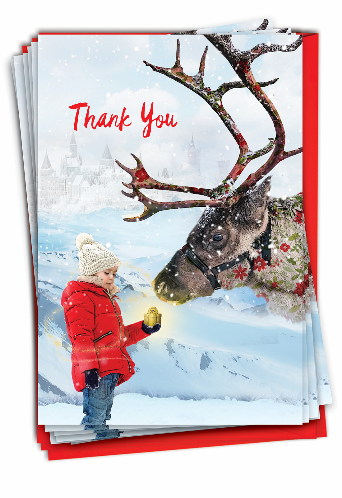 Patterned Animals - Reindeer - Creative Christmas Thank You Box of 12 Cards, Wholesale