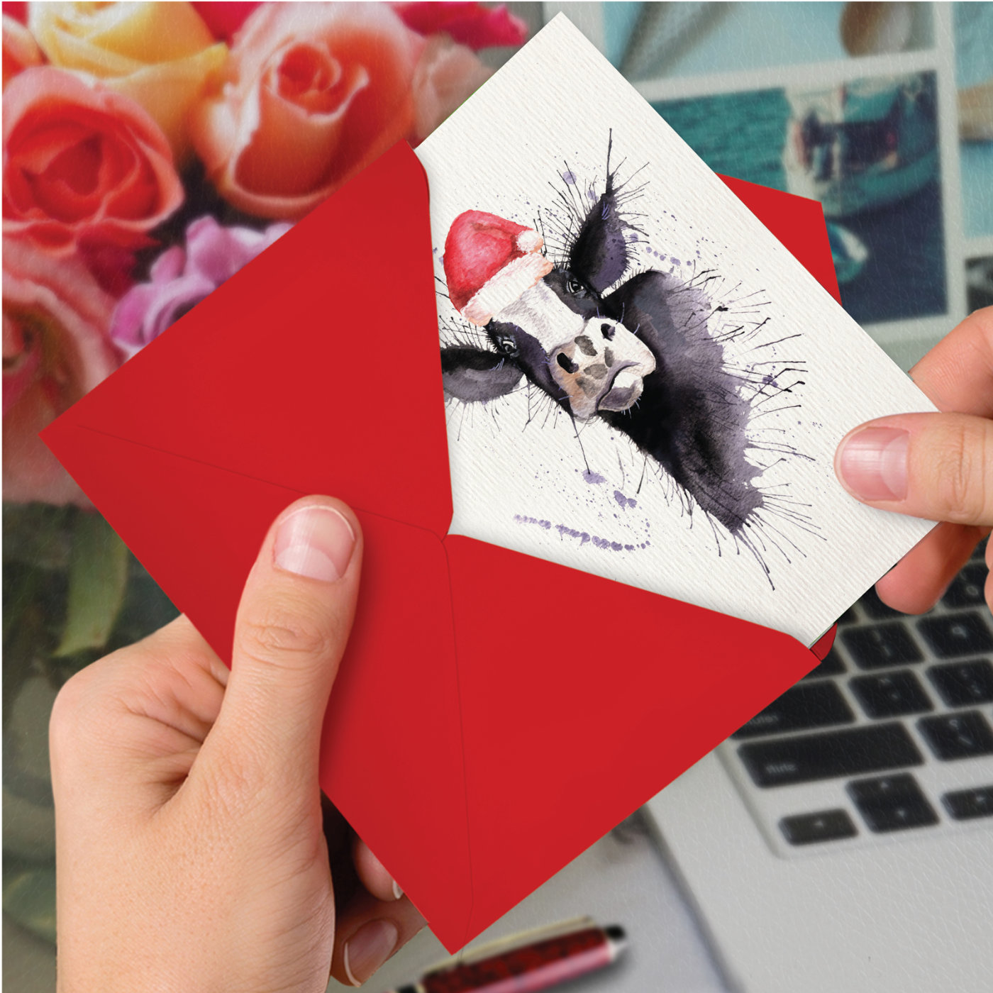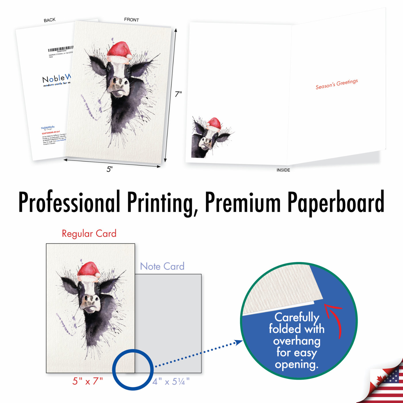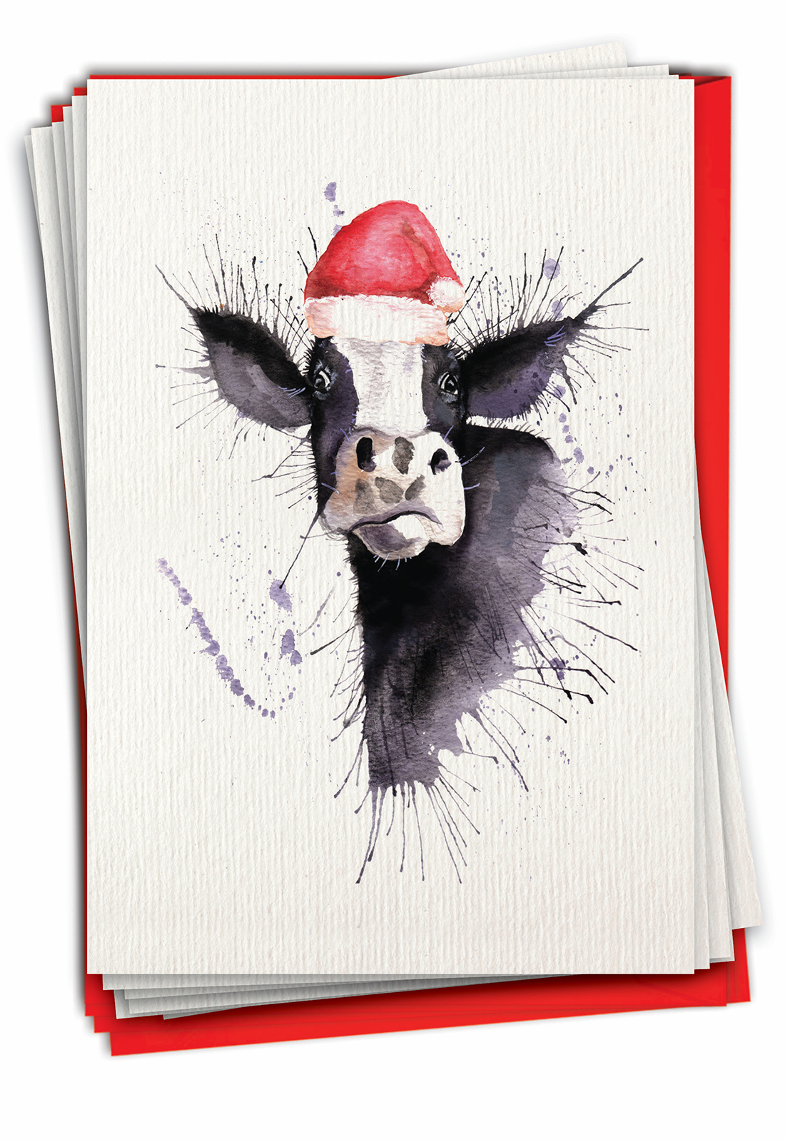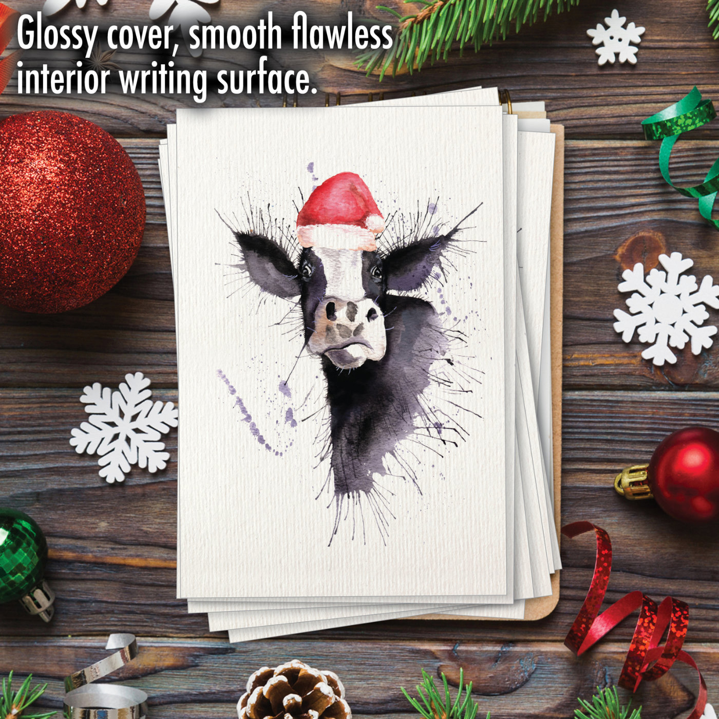 Wildlife Expressions - Cow - Beautiful Merry Christmas Box of 12 Cards, Wholesale