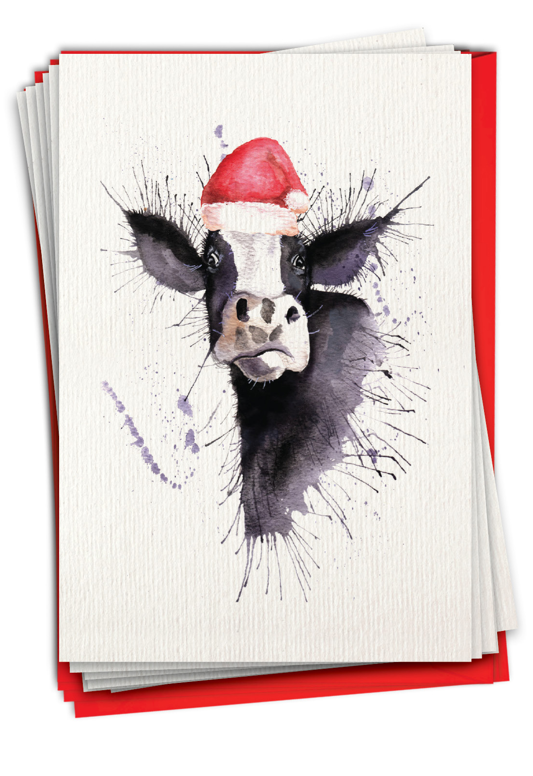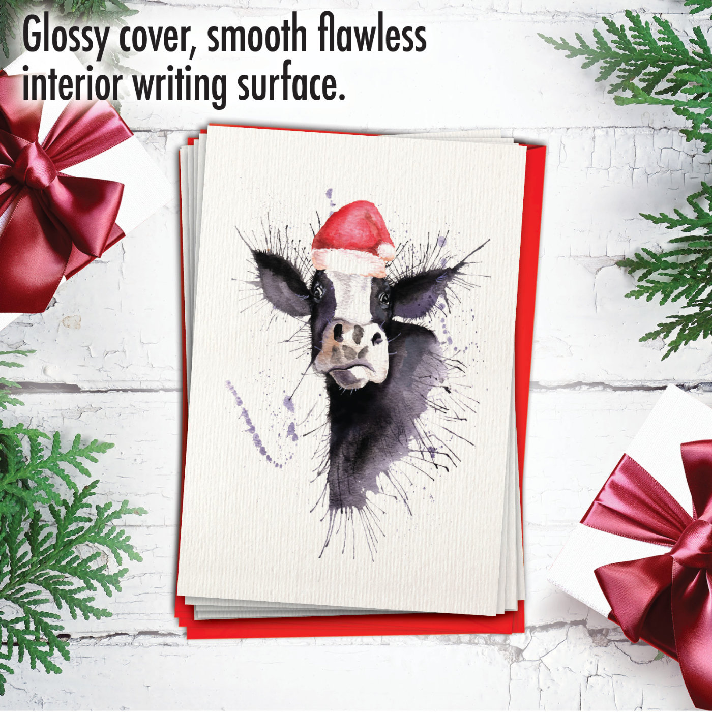 Wildlife Expressions - Cow - Creative Christmas Thank You Box of 12 Cards, Wholesale