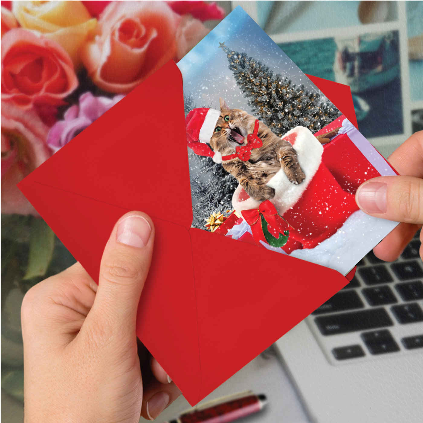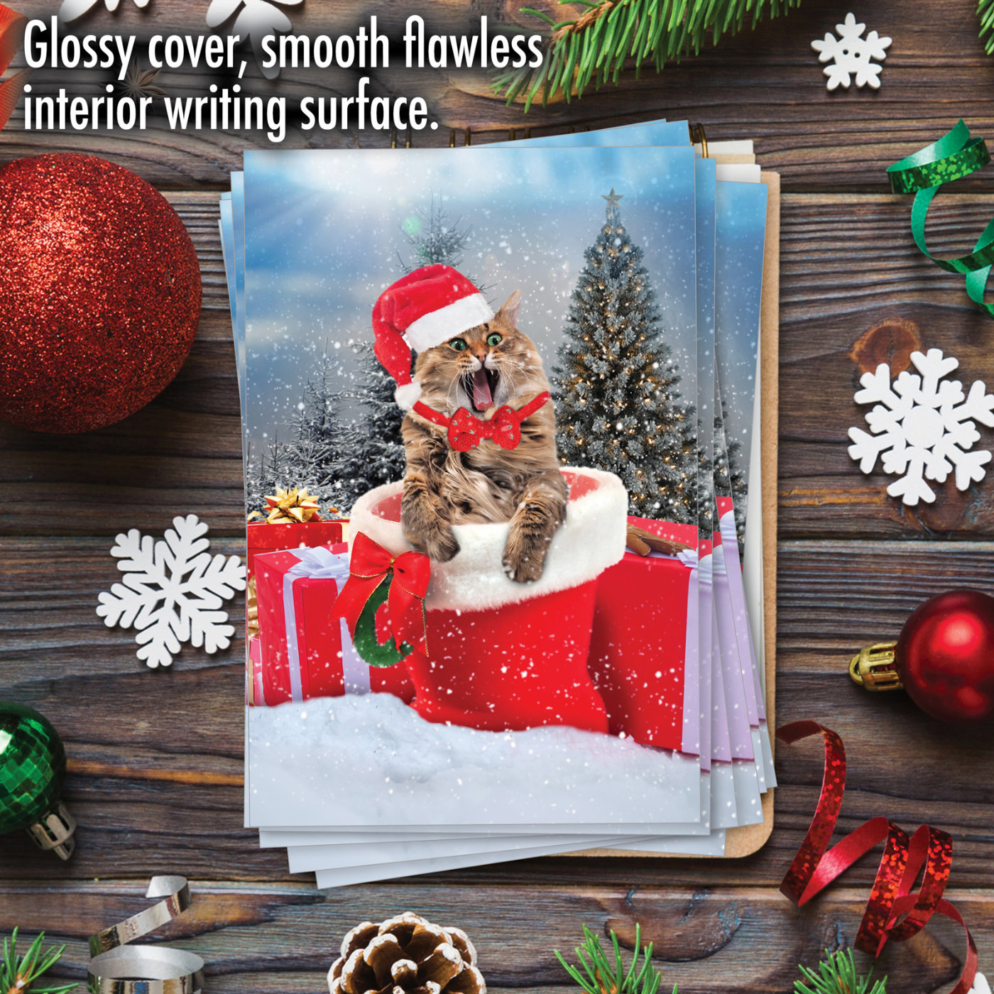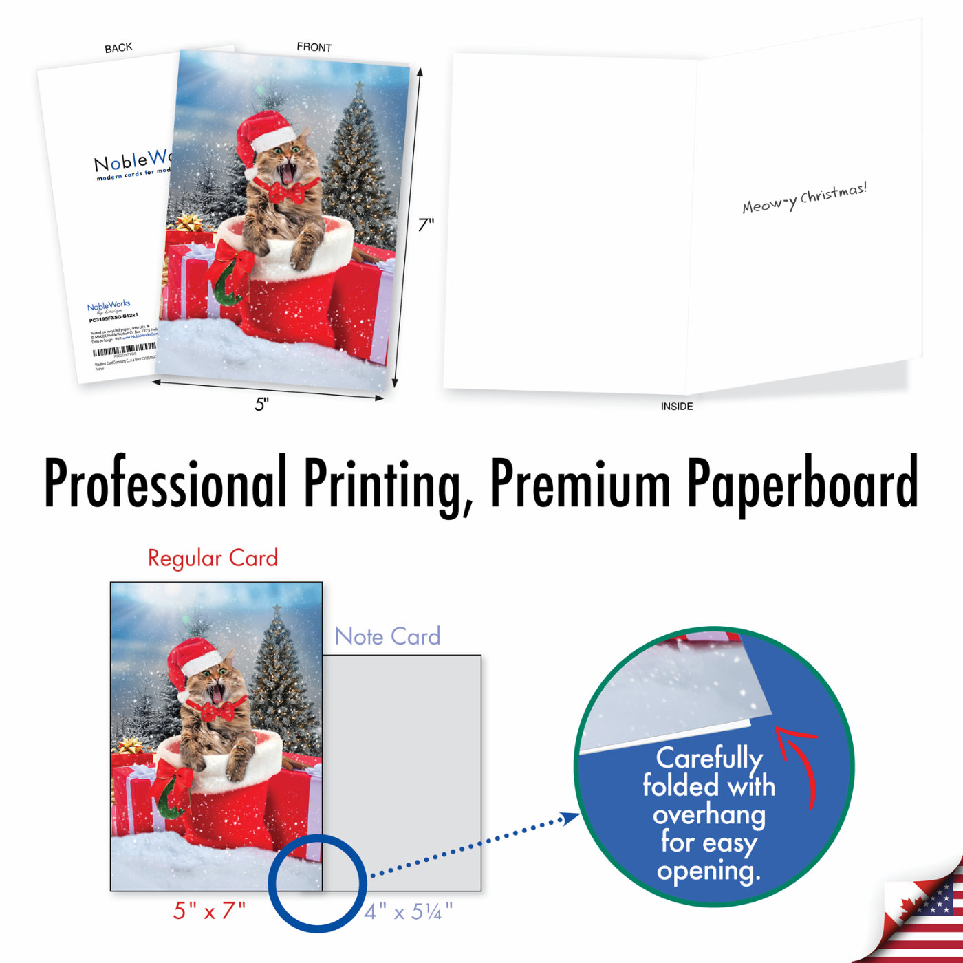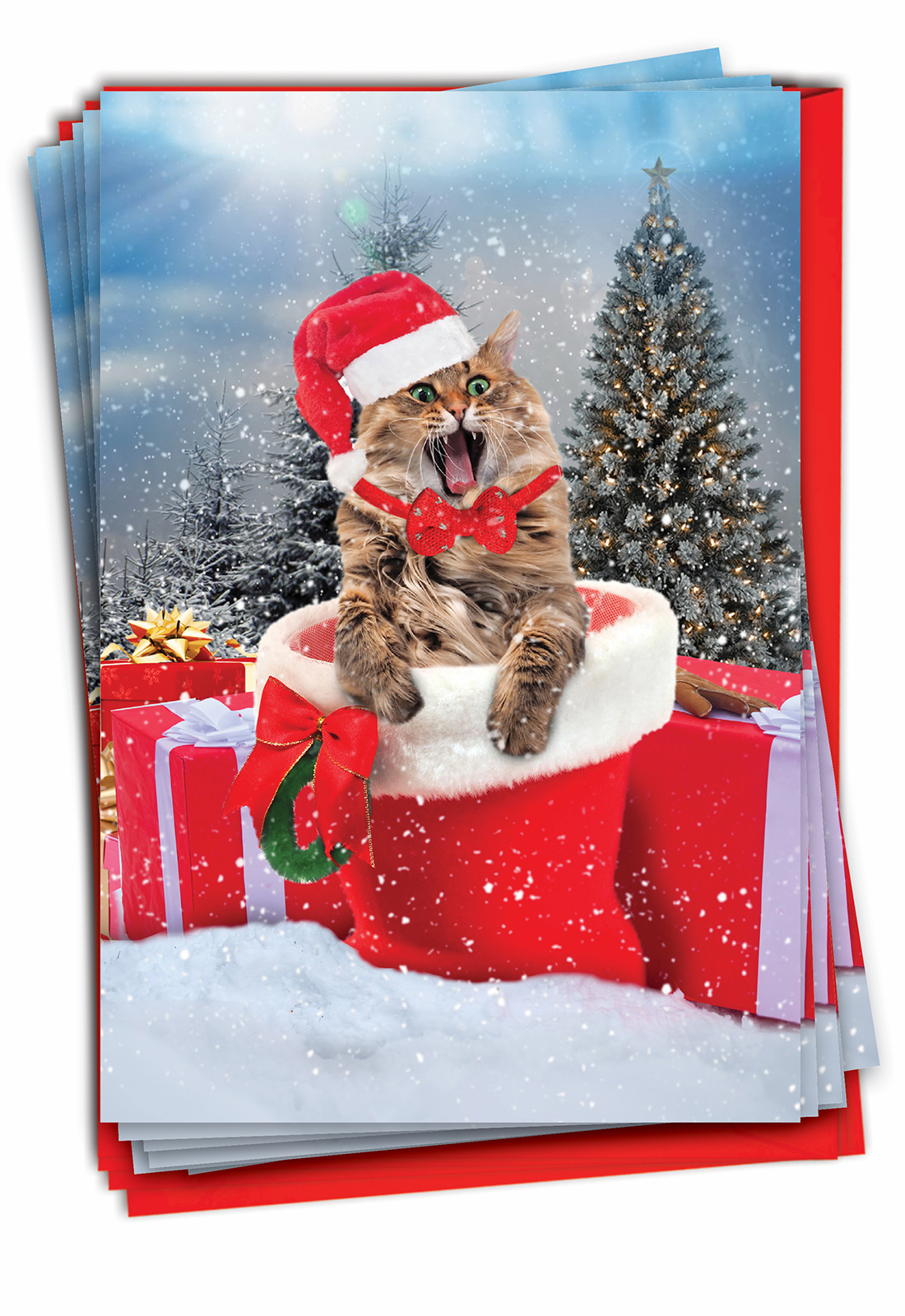 Cats Antics - Stylish Merry Christmas Box of 12 Cards, Wholesale