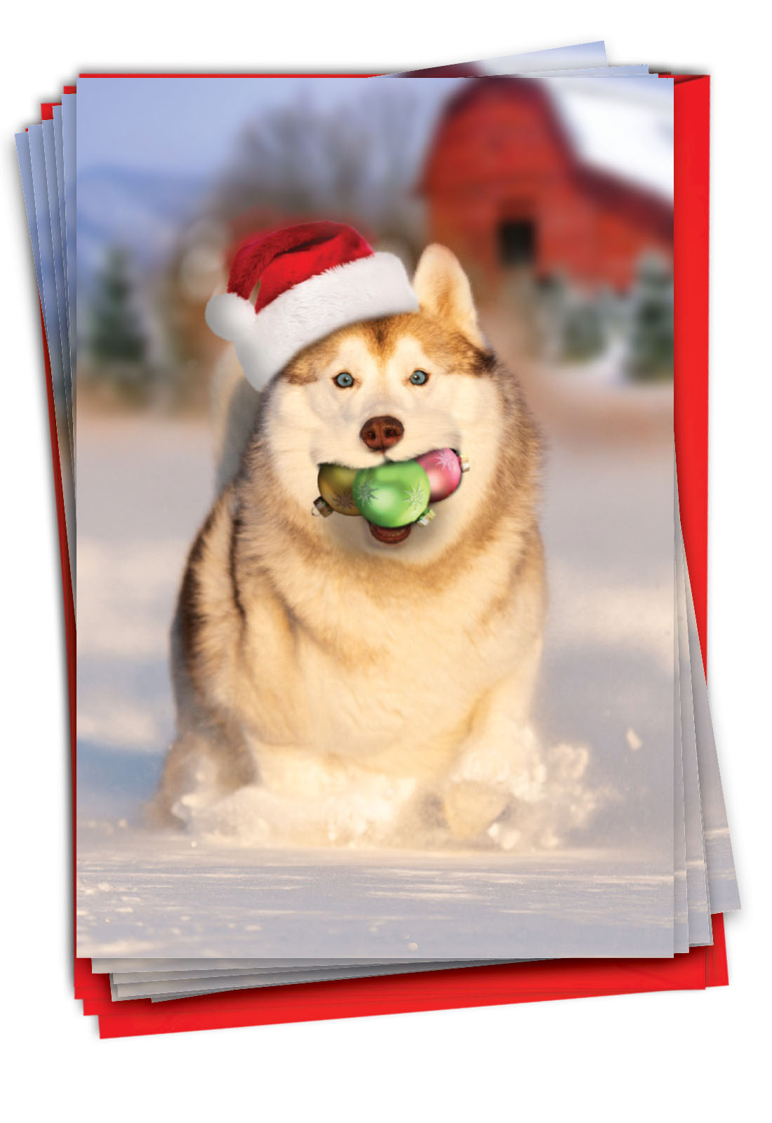 Holiday Dog Mouth - Funny Christmas Thank You Box of 12 Cards, Wholesale