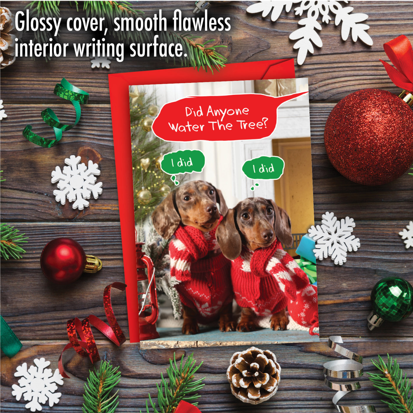 Watering The Tree - Humorous Merry Christmas Card, Wholesale