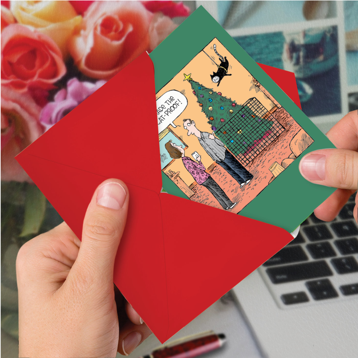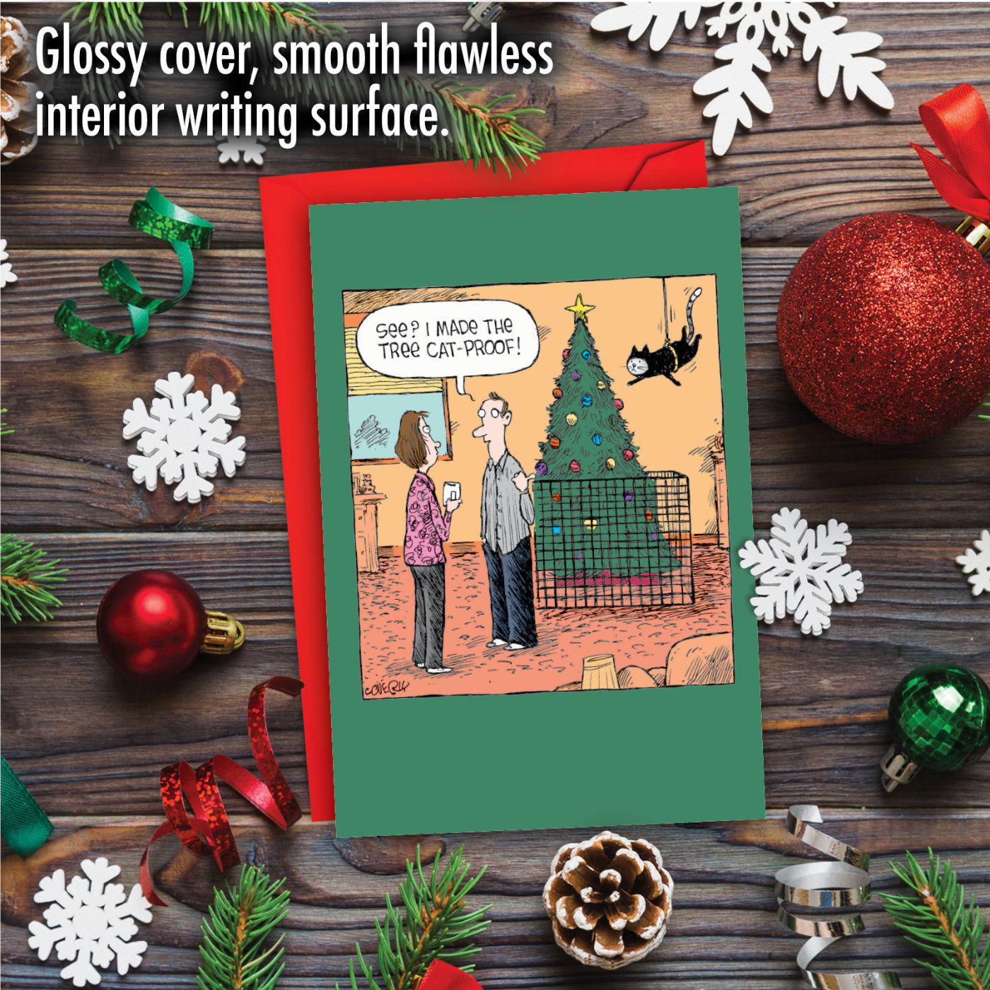 Cat-Proof Tree - Humorous Merry Christmas Card, Wholesale