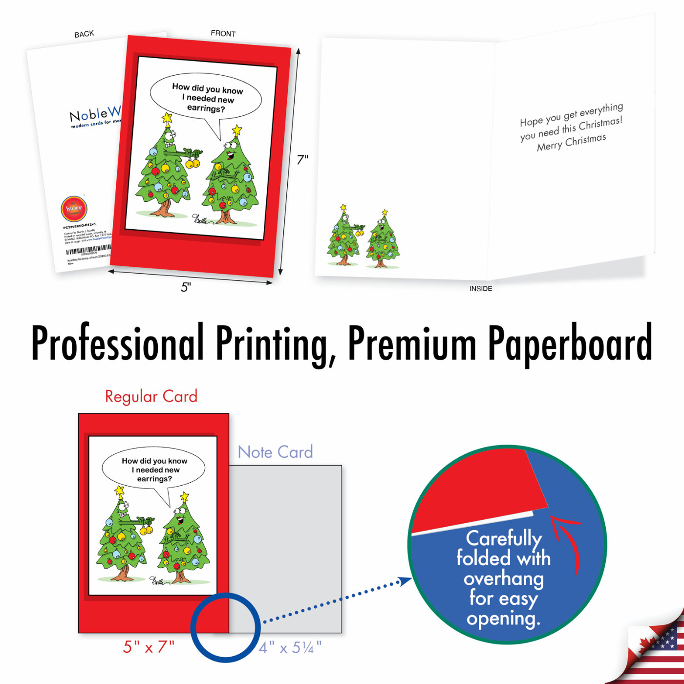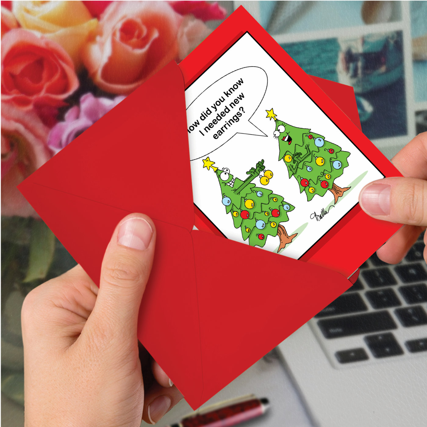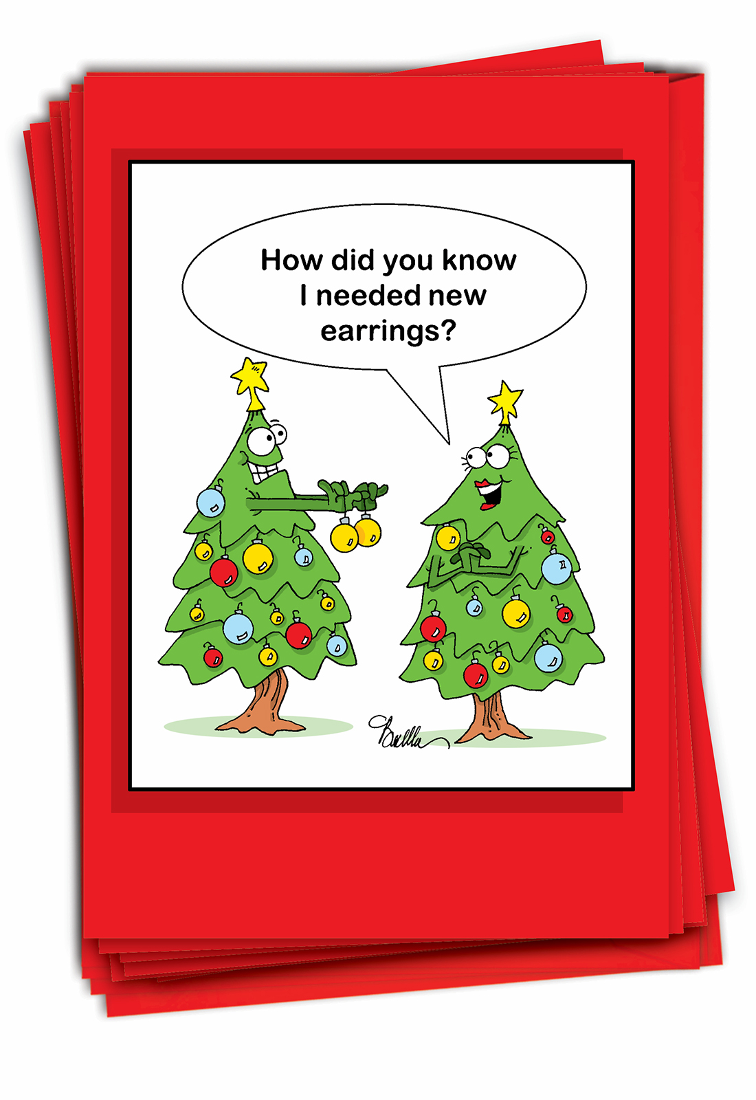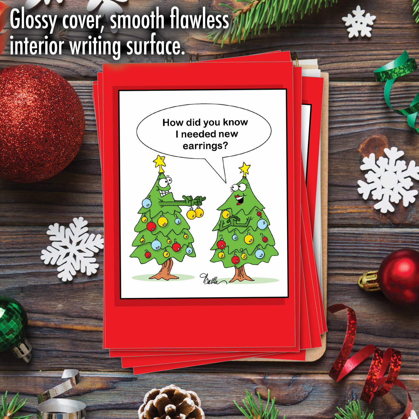 Tree Earrings - Hilarious Merry Christmas Box of 12 Cards, Wholesale