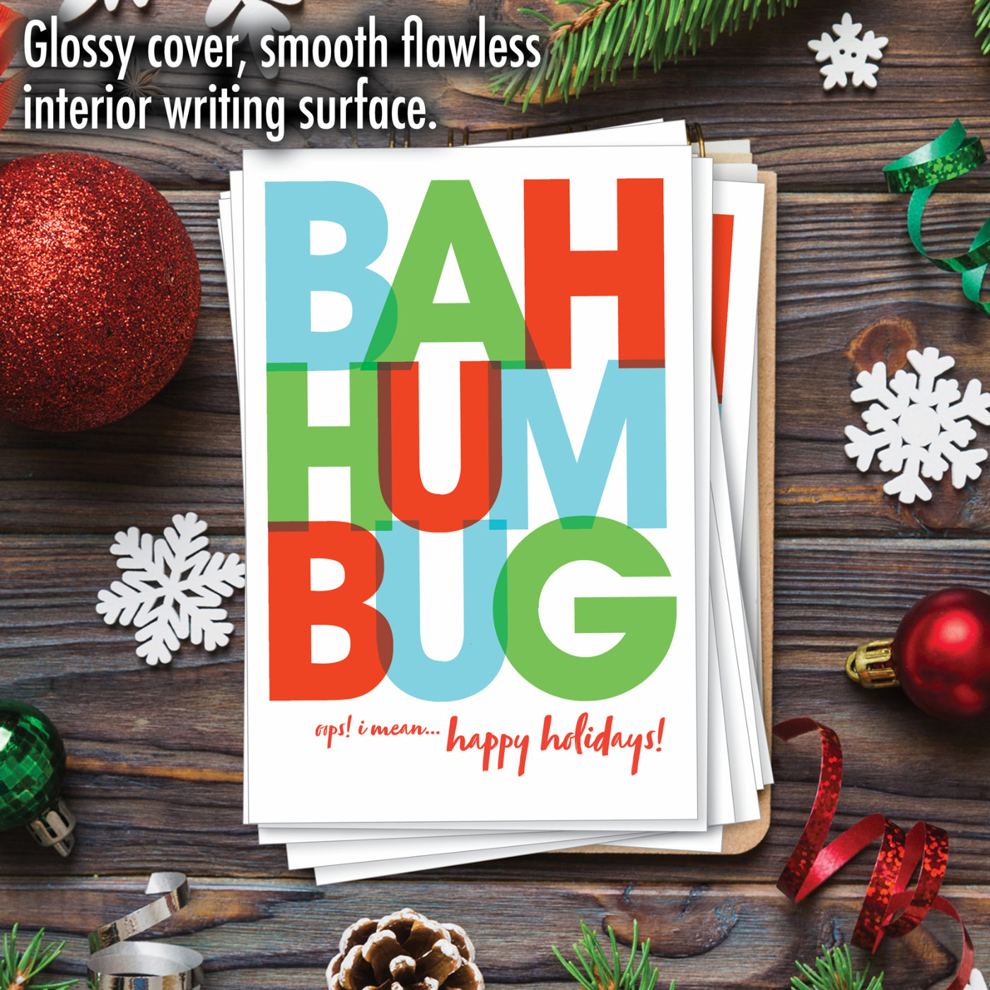 Bah Humbug - Hilarious Merry Christmas Box of 12 Cards, Wholesale