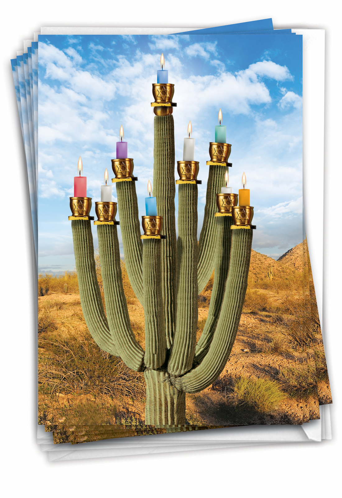 Prickly Menorah - Hilarious Hanukkah Box of 12 Cards, Wholesale