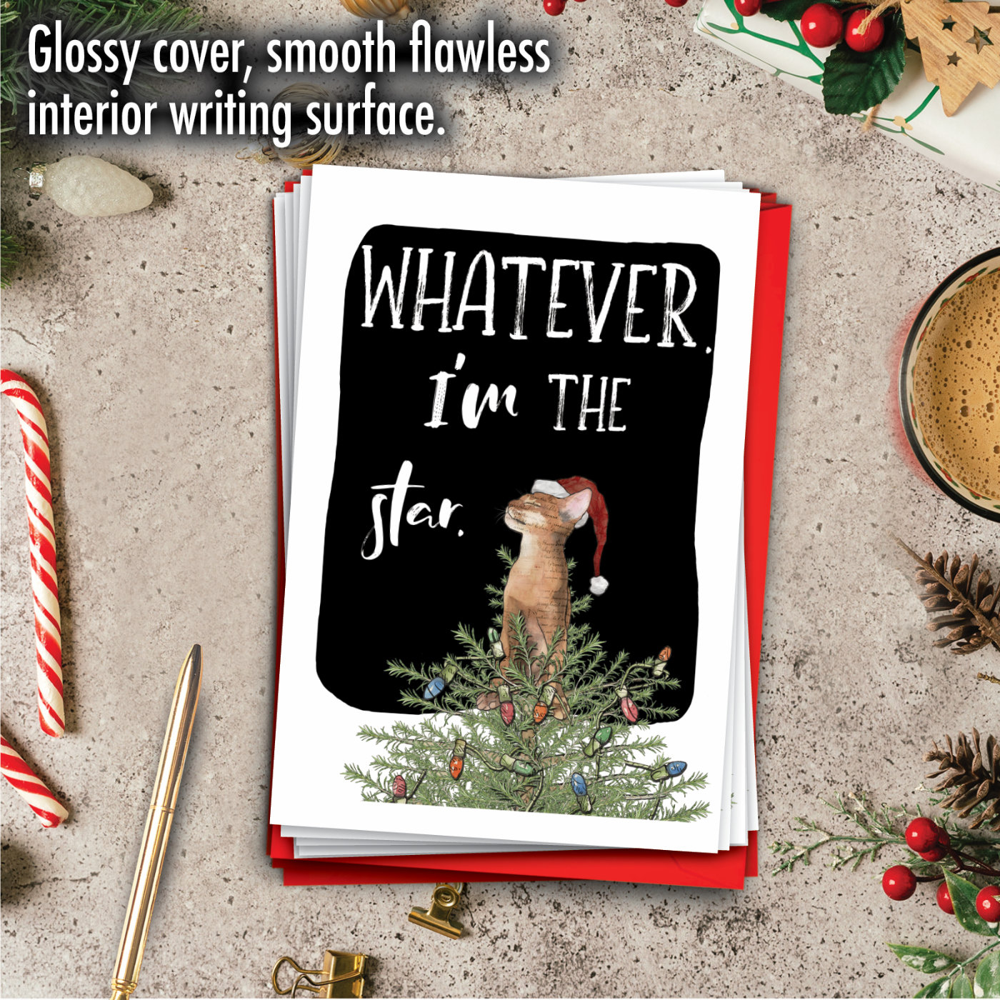 Cat Star - Hilarious Merry Christmas Box of 12 Cards, Wholesale