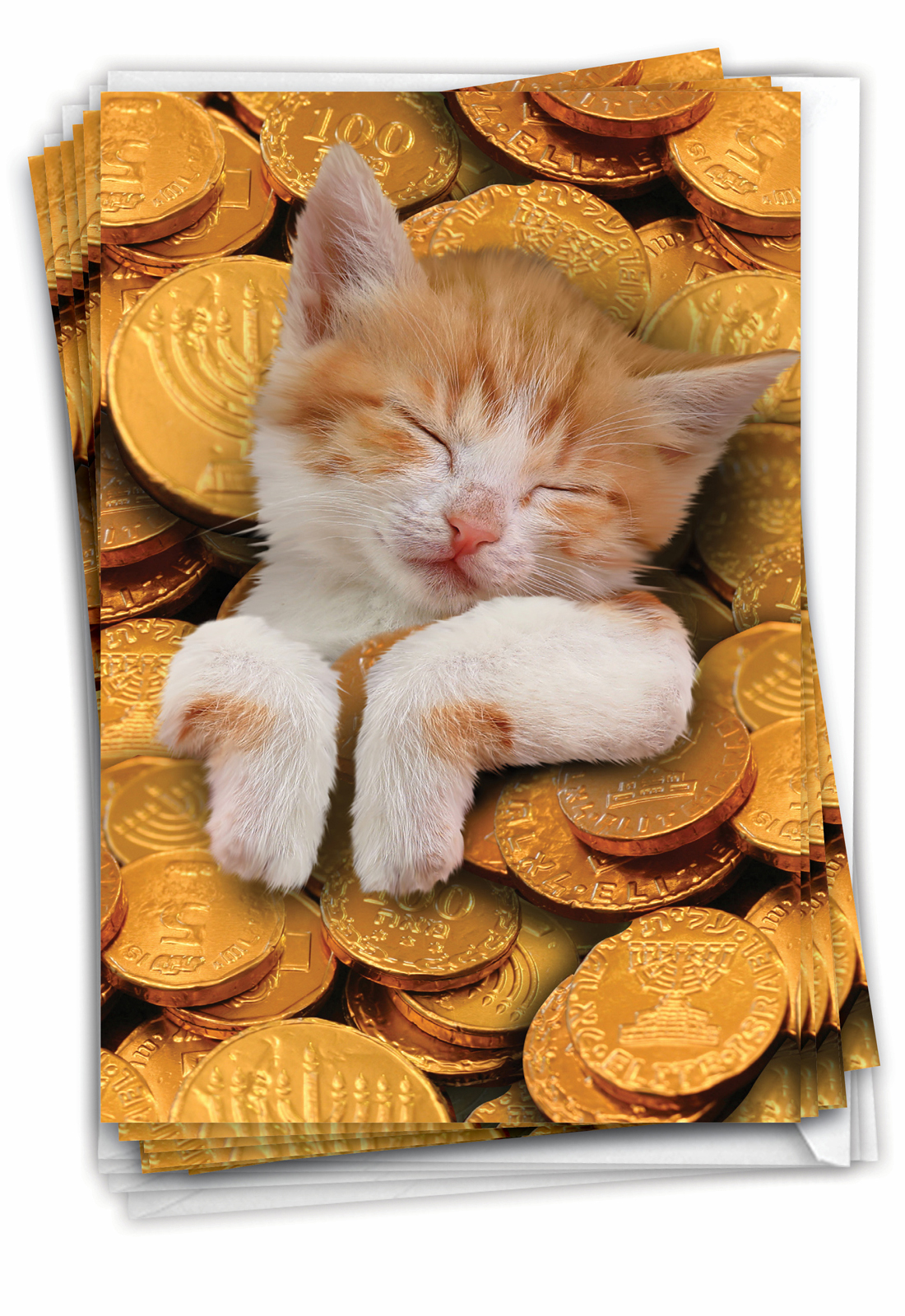 Cat In Gelt - Hysterical Hanukkah Box of 12 Cards, Wholesale