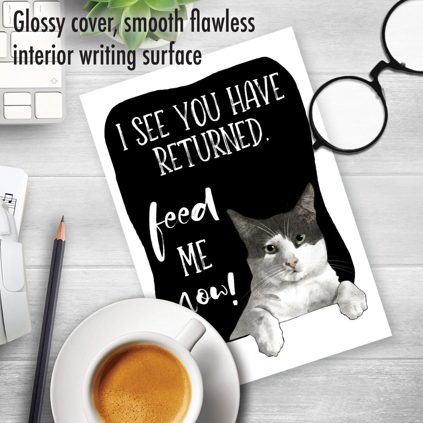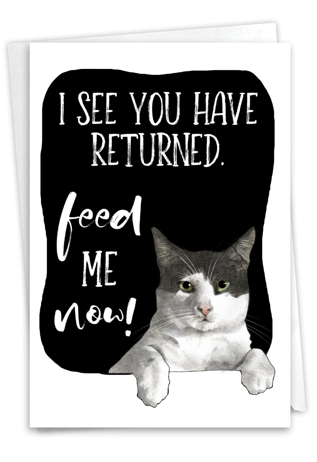 Cat Antics - Feed Me - Funny Miss You Card, Wholesale