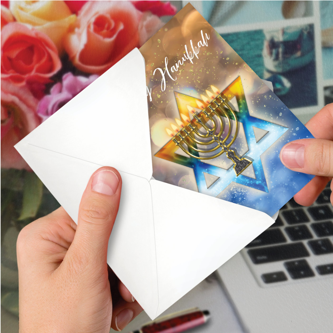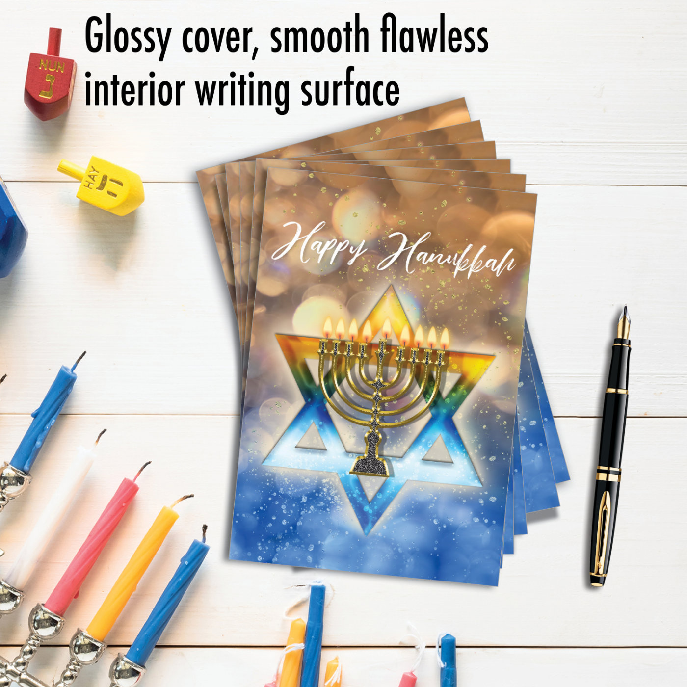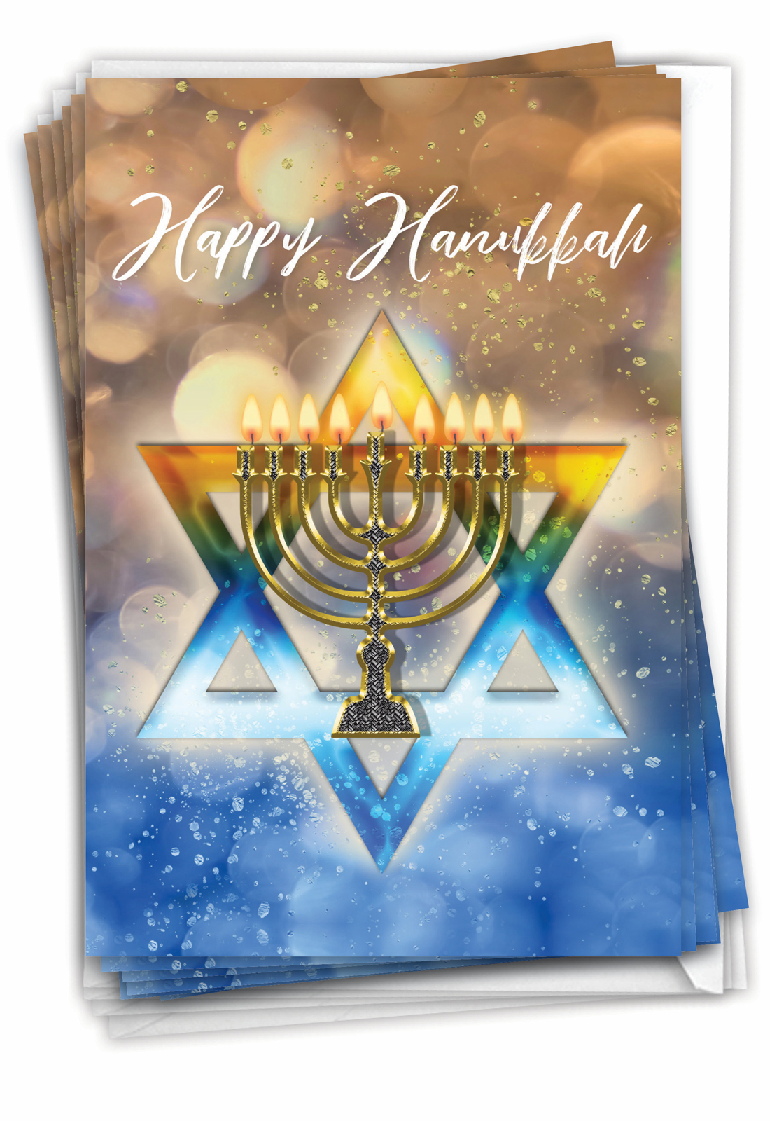 Festival of Lights - Stylish Blank Hanukkah Box of 12 Cards, Wholesale