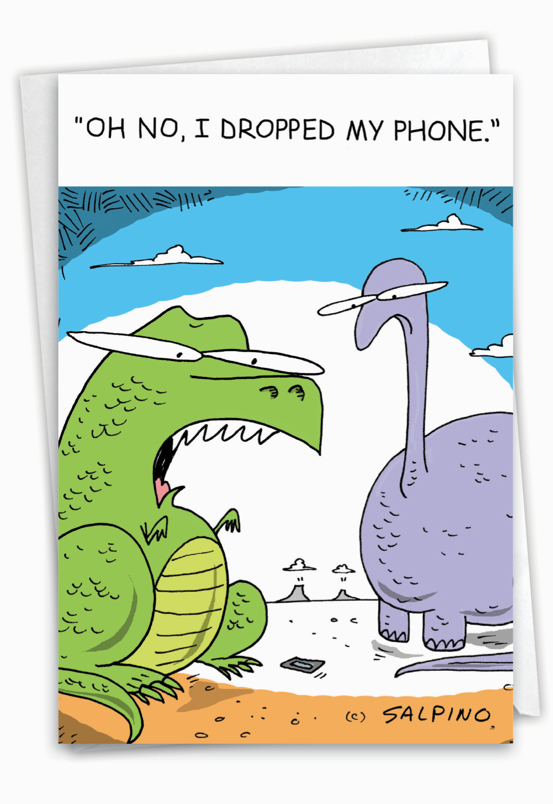 Dinosaur Dropped Phone - Funny Birthday Card, Wholesale