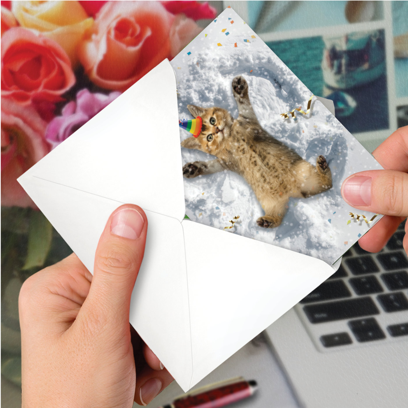 Critter Snow Angels - Kitten - Funny Birthday Card, Wholesale