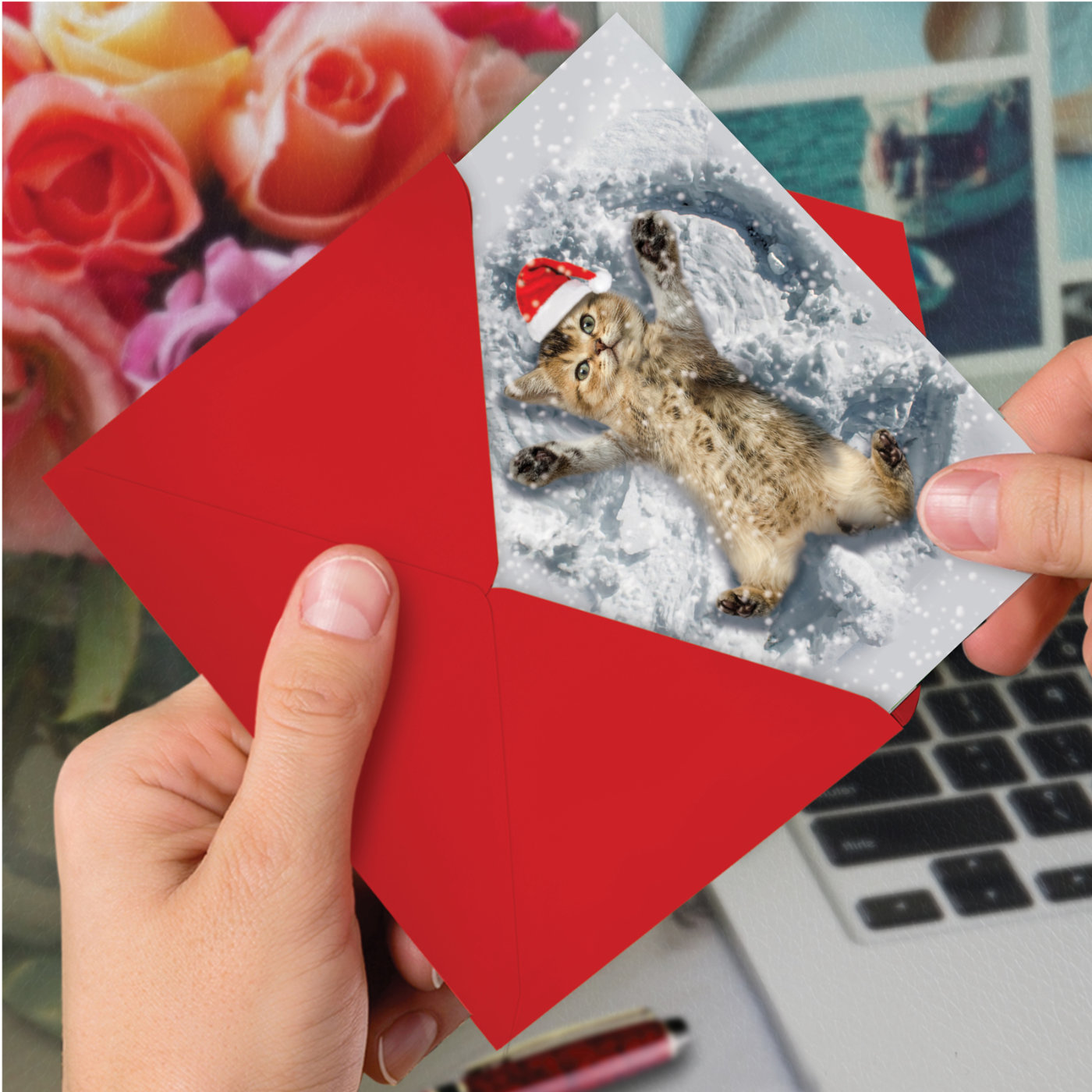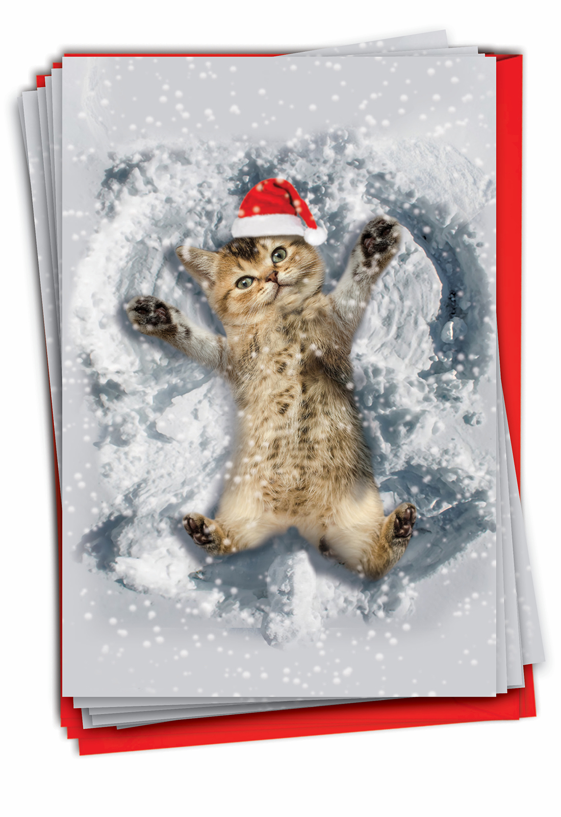 Critter Snow Angels - Artistic Merry Christmas Box of 12 Cards, Wholesale