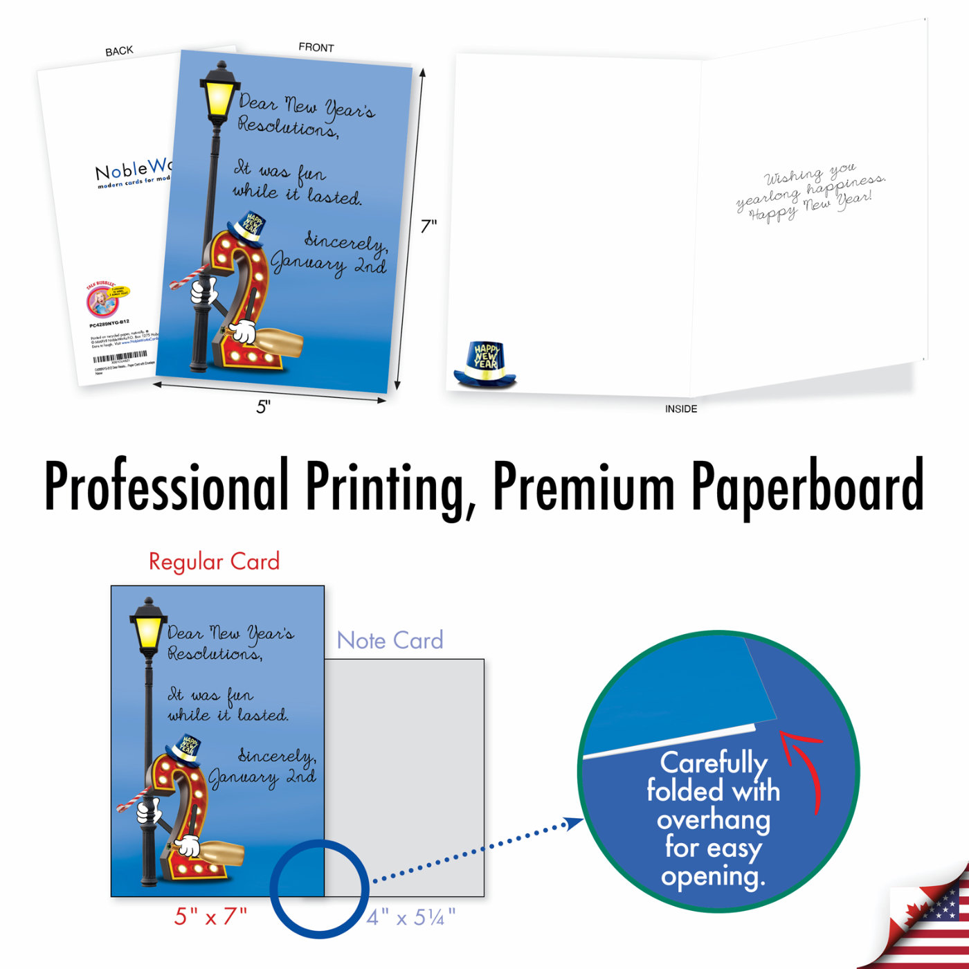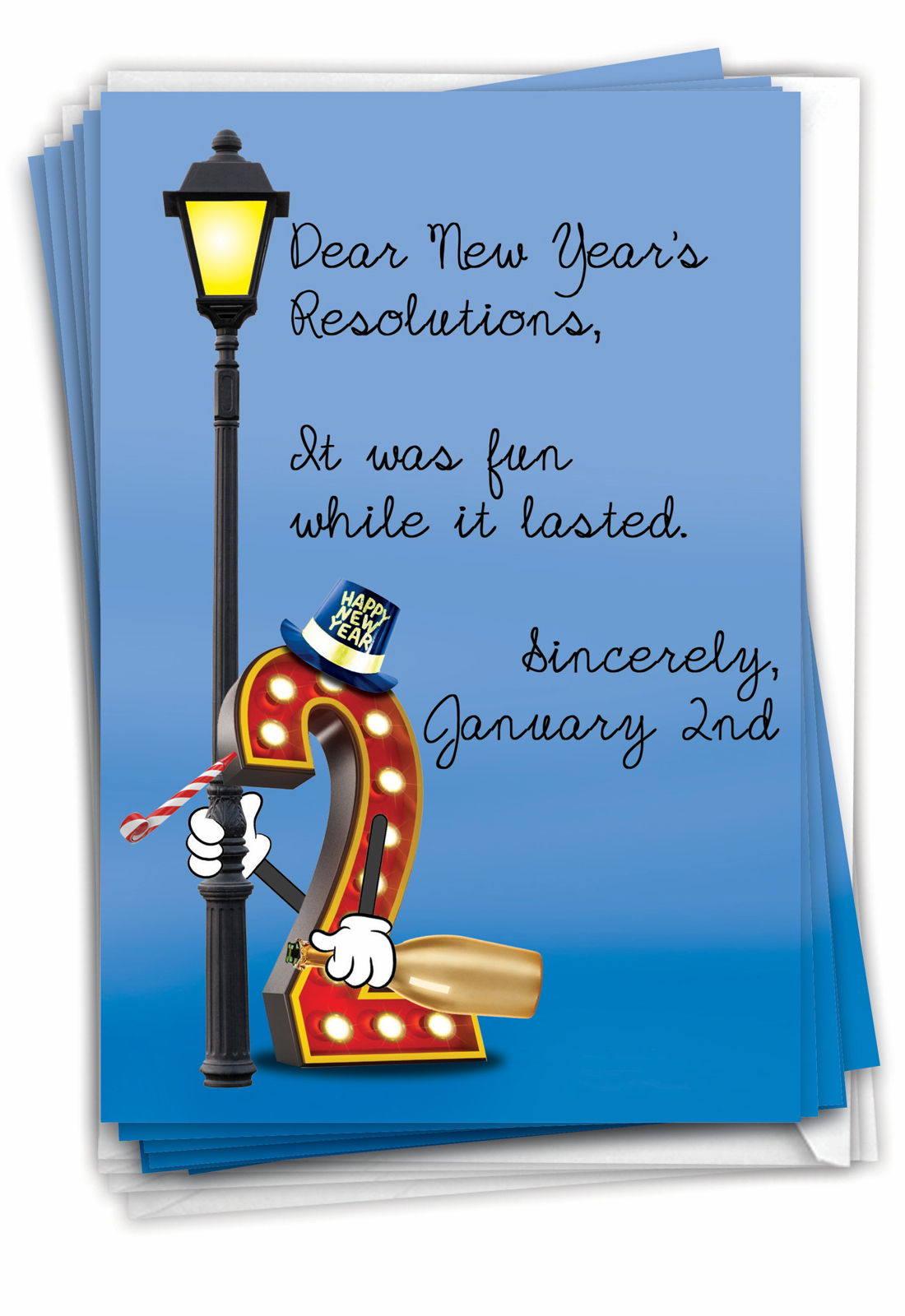 Dear Resolutions - Humorous New Year Box of 12 Cards, Wholesale