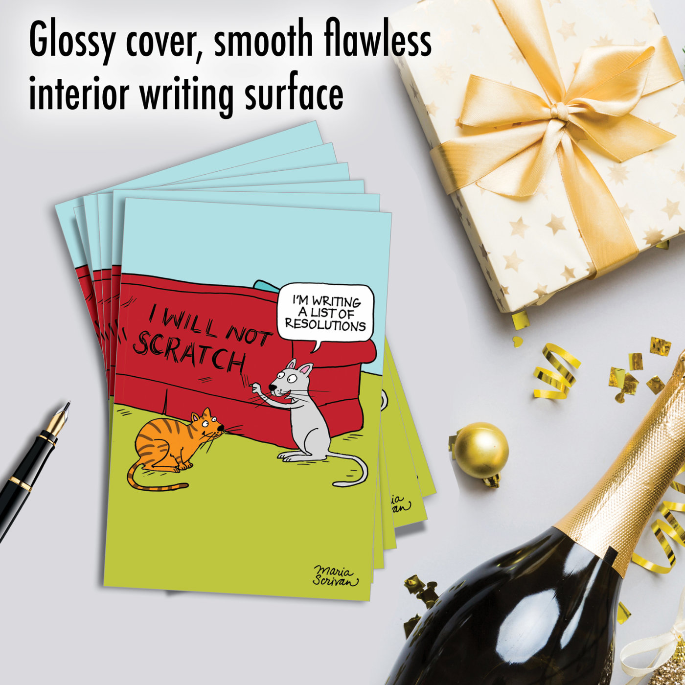 Cat Resolutions - Hysterical New Year Box of 12 Cards, Wholesale