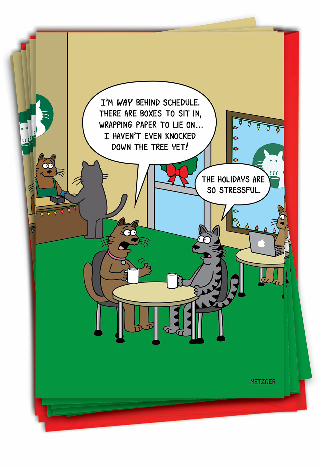 Stressful Holidays - Hilarious Christmas Box of 12 Cards, Wholesale