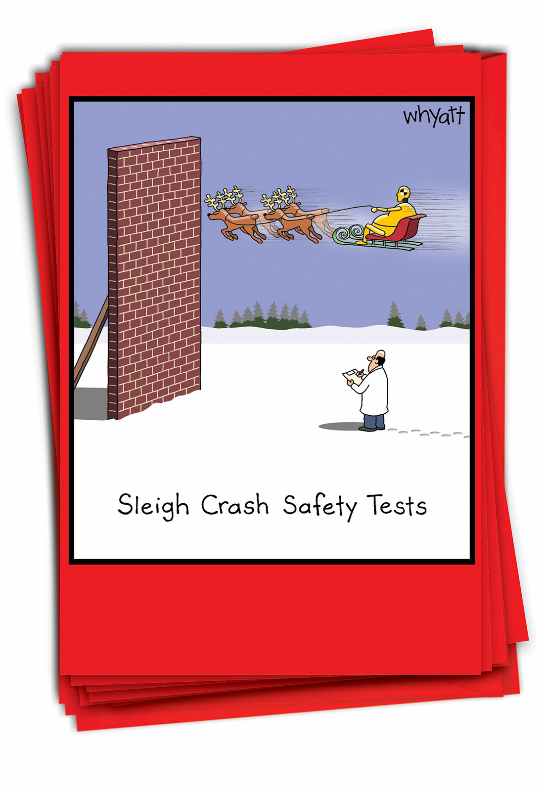Sleigh Safety Tests - Hilarious Christmas Box of 12 Cards, Wholesale