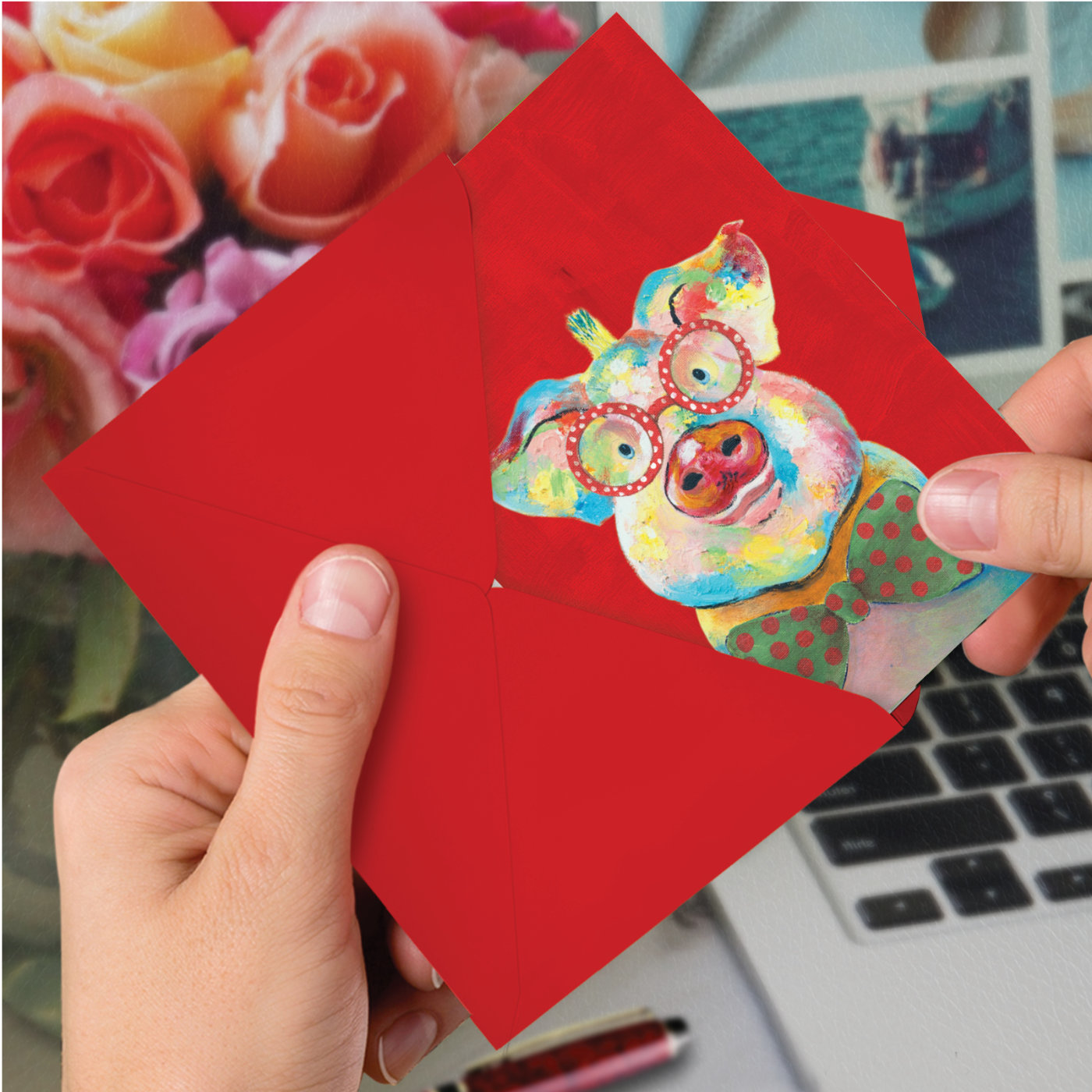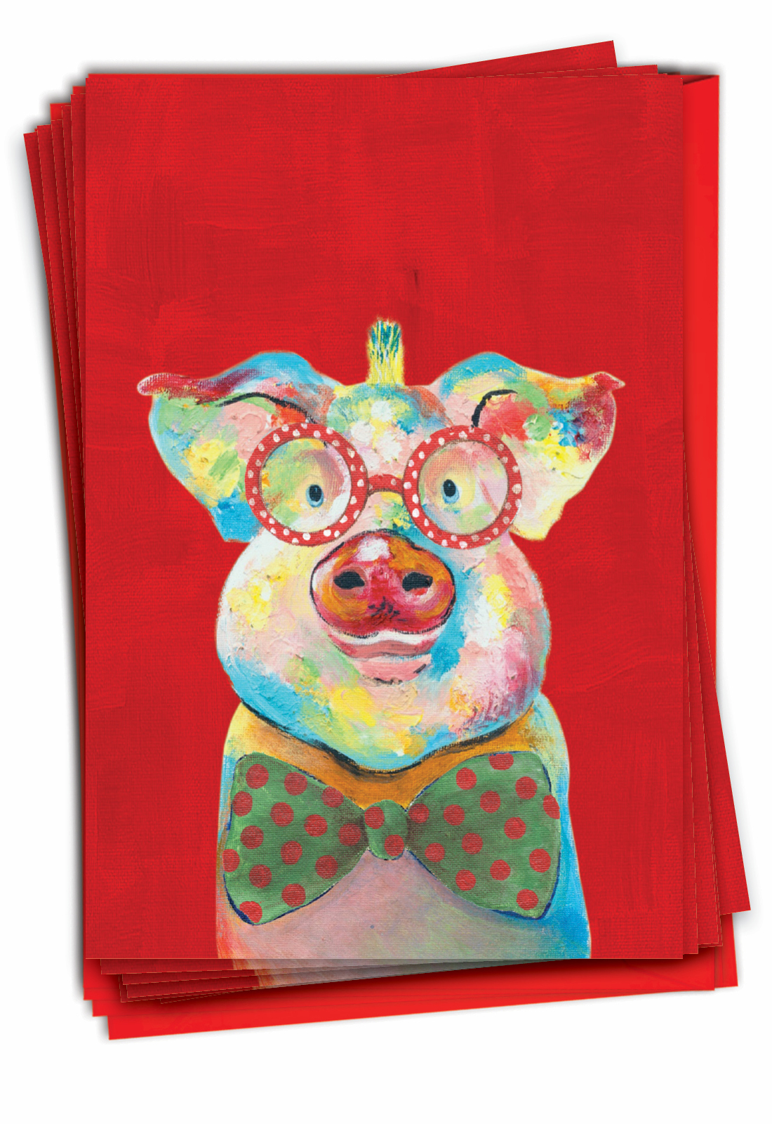 Funny Farm - Pig - Beautiful Merry Christmas Box of 12 Cards, Wholesale