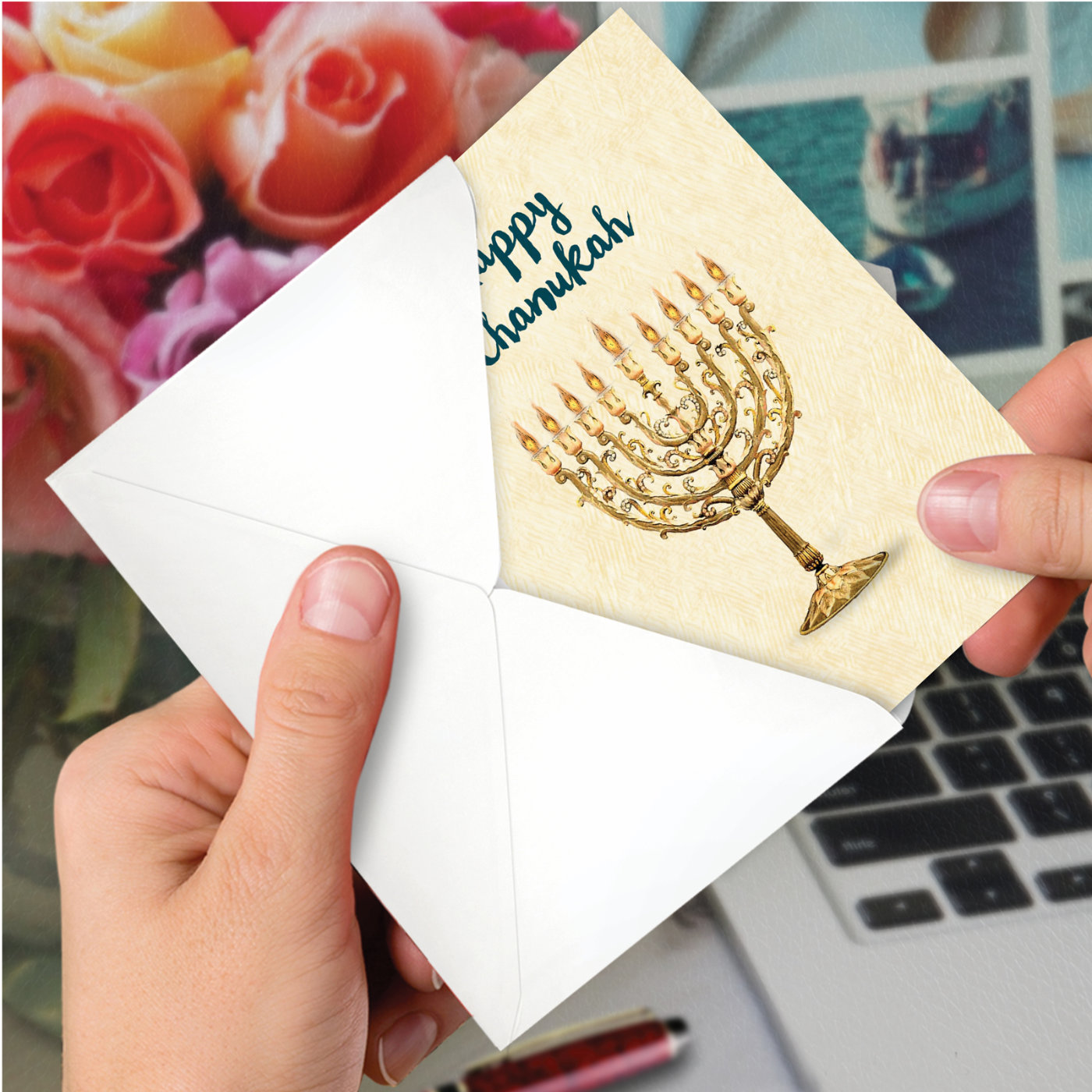 Hanukkiahs - Beautiful Chanukah Box of 12 Cards, Wholesale