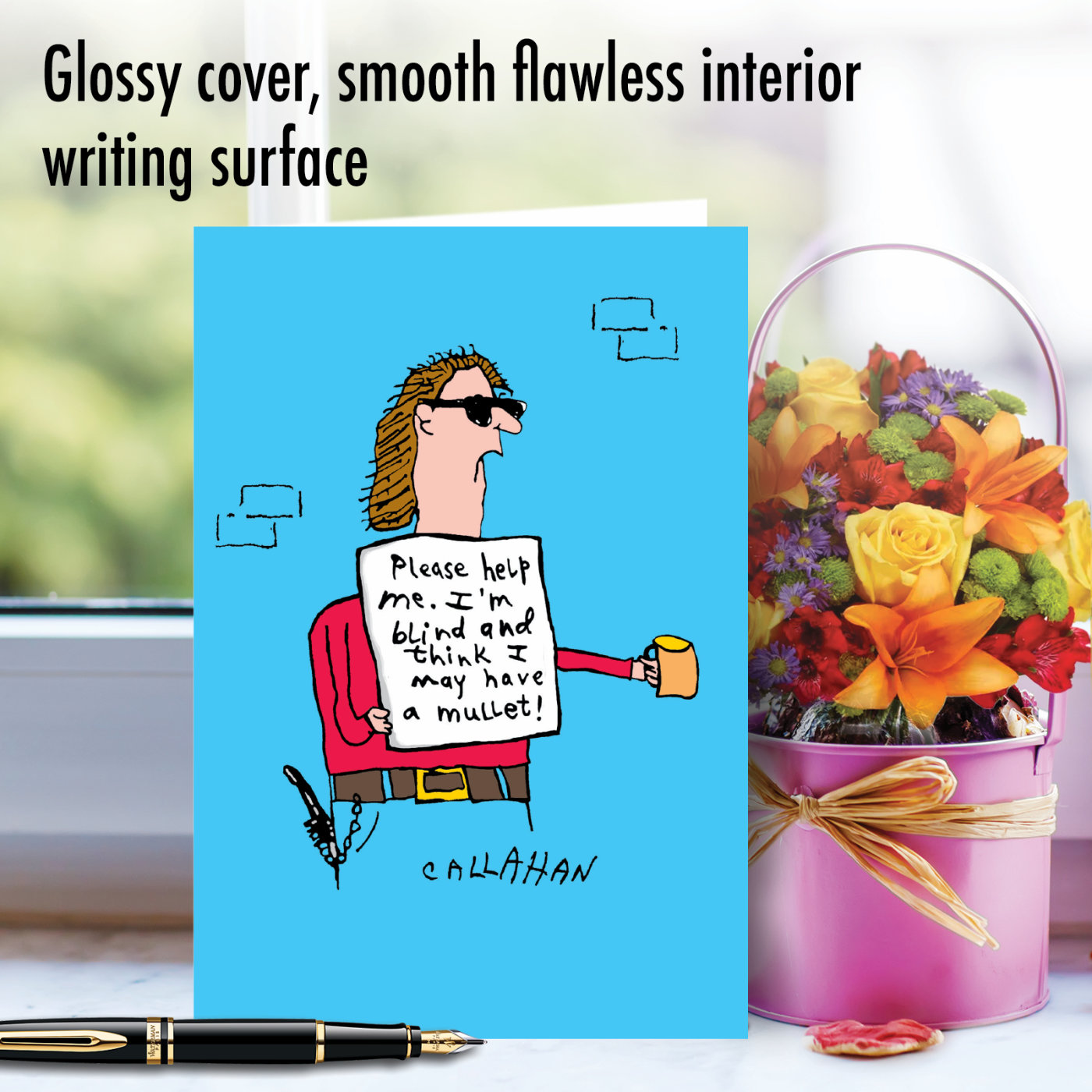 John Callahan's Blind Mullet - Humorous Blank Card, Wholesale
