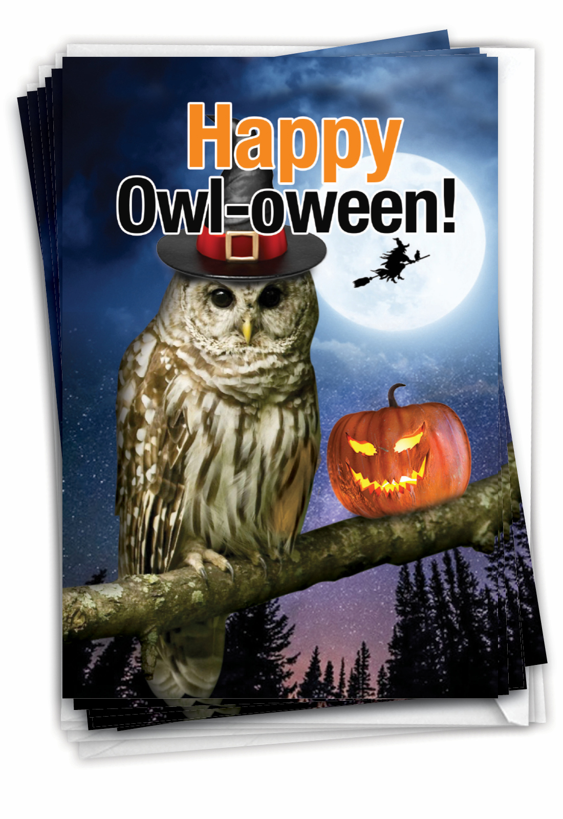 Happy Owl-oween - Humorous Halloween Box of 12 Cards, Wholesale