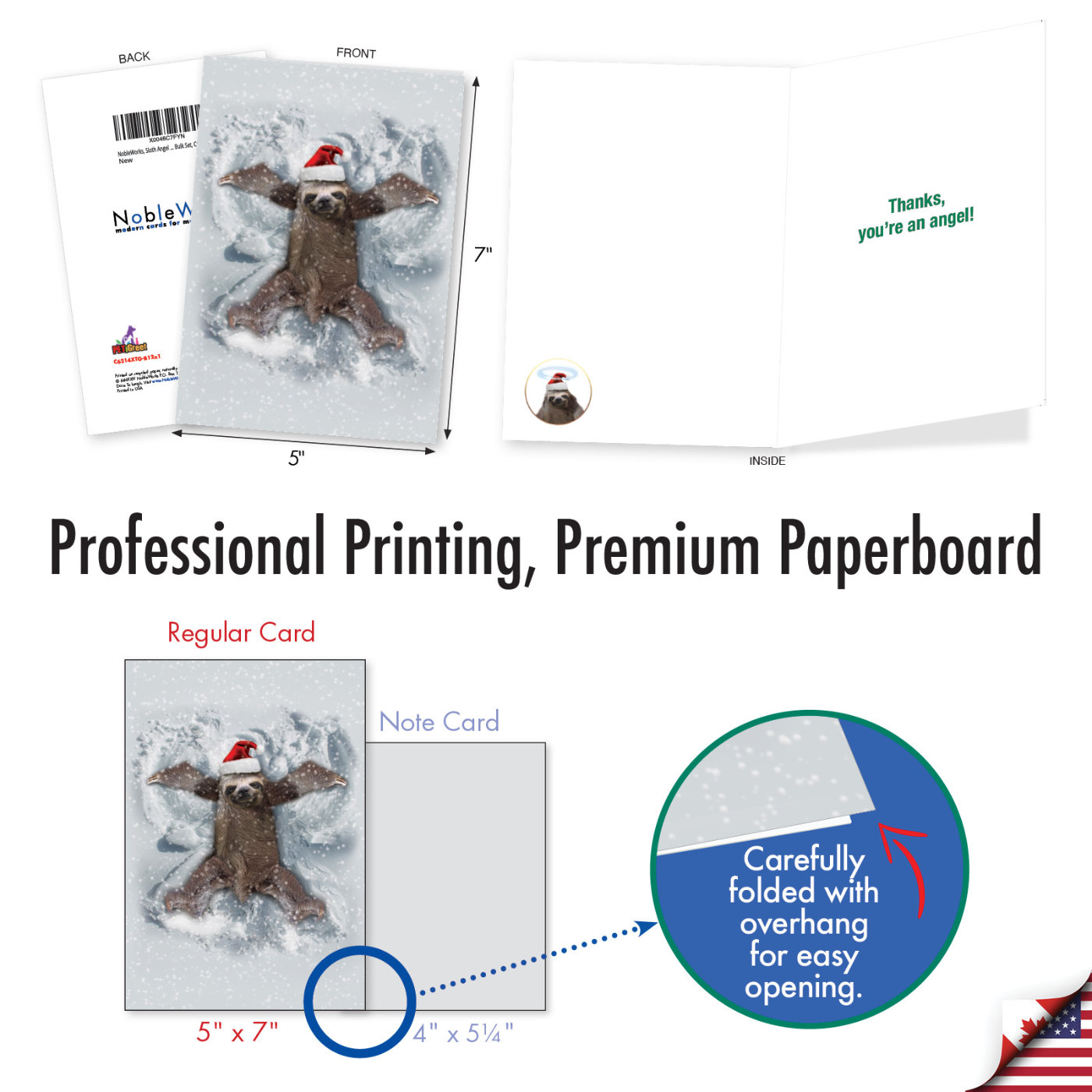 Sloth Angel - Hysterical Christmas Thank You Box of 12 Cards, Wholesale