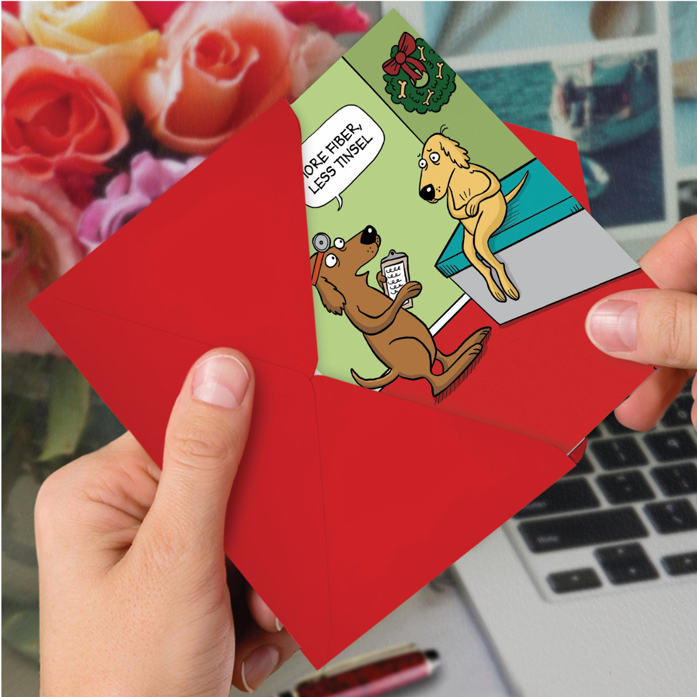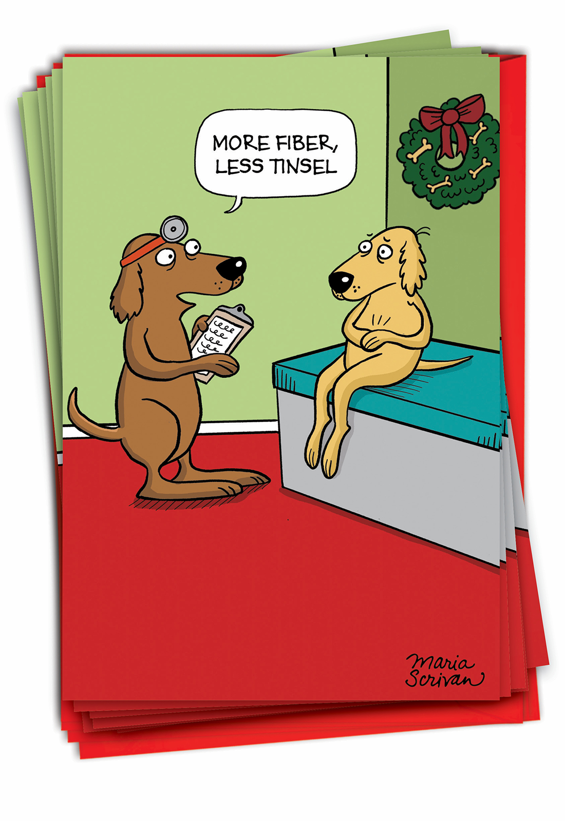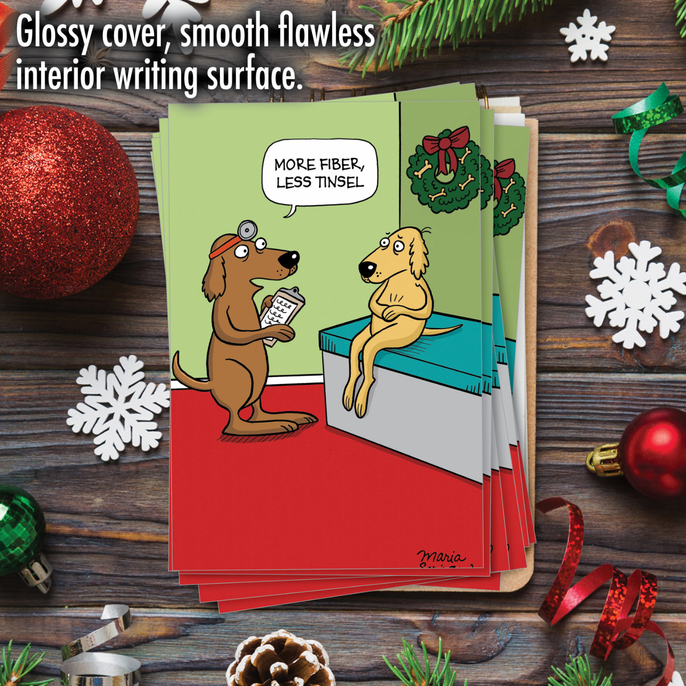 Tinsel Dog - Hilarious Merry Christmas Box of 12 Cards, Wholesale