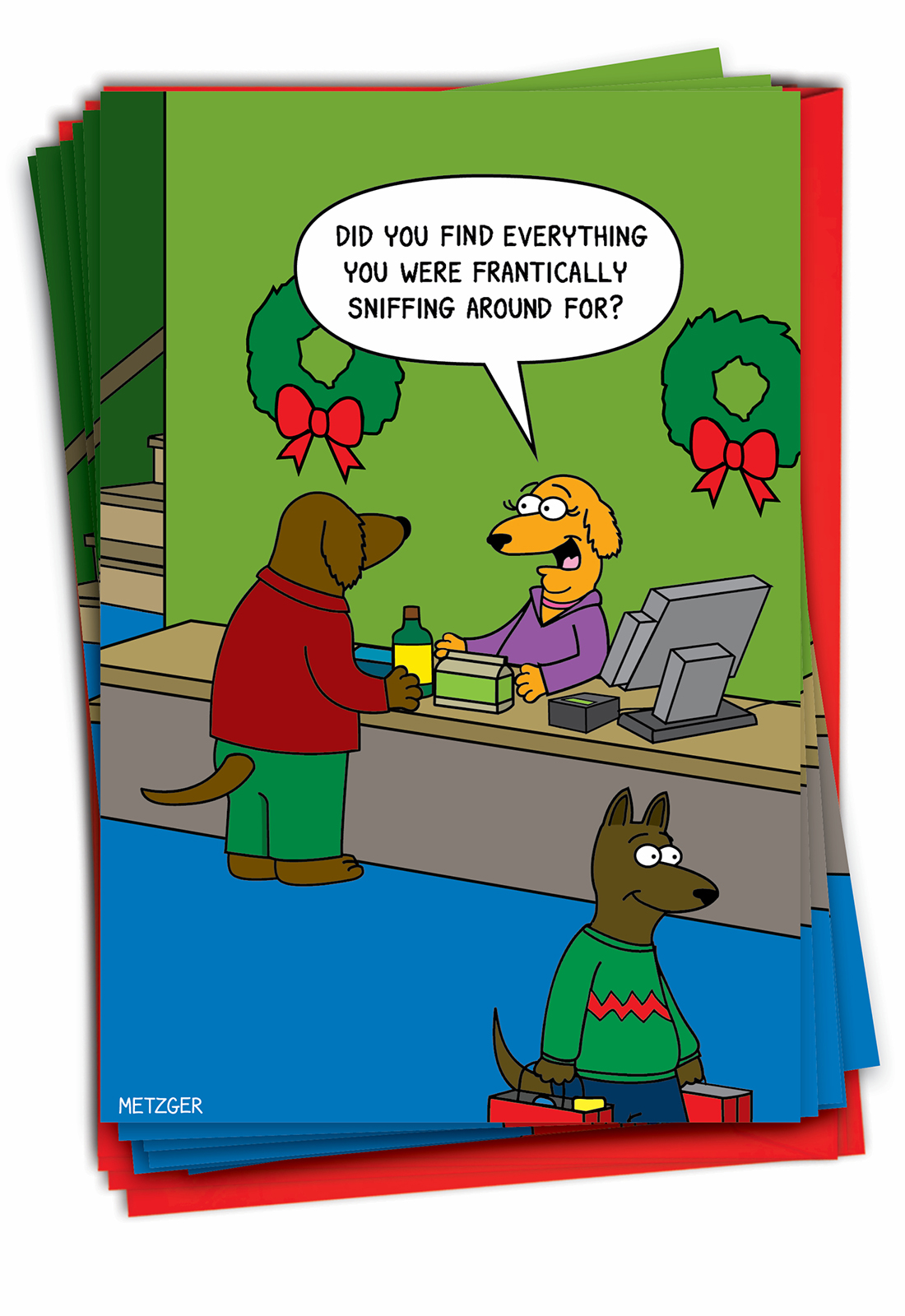 Dog Shopping - Hysterical Merry Christmas Box of 12 Cards, Wholesale