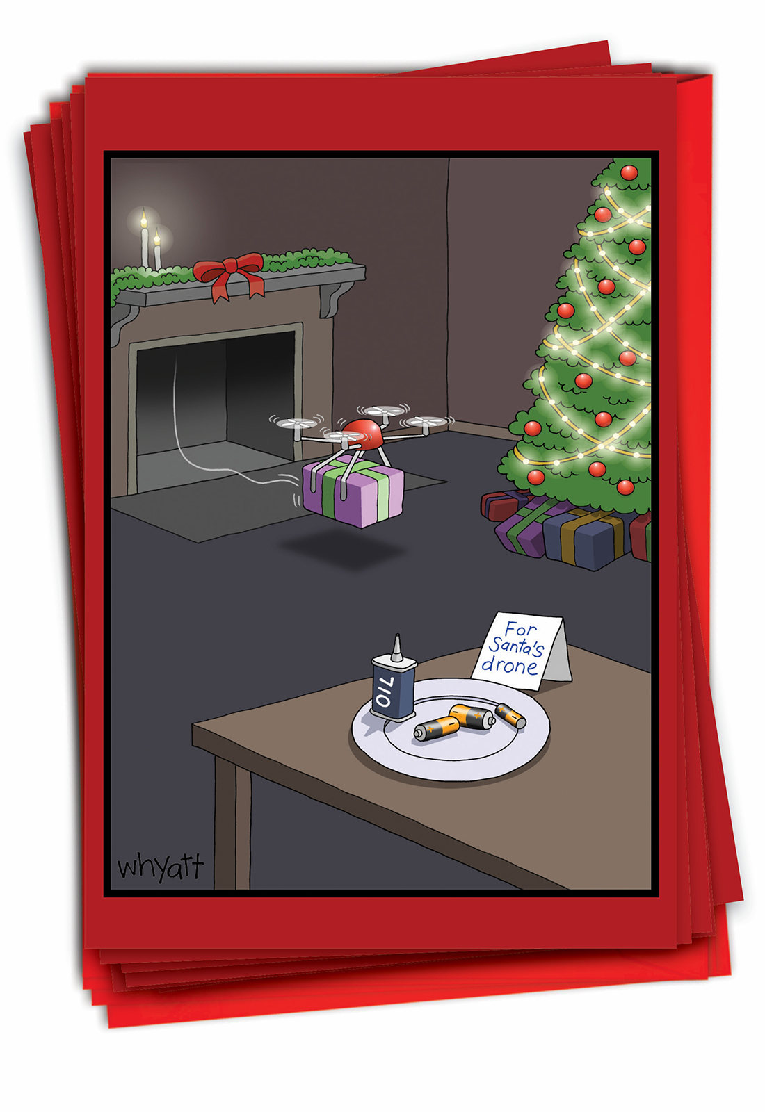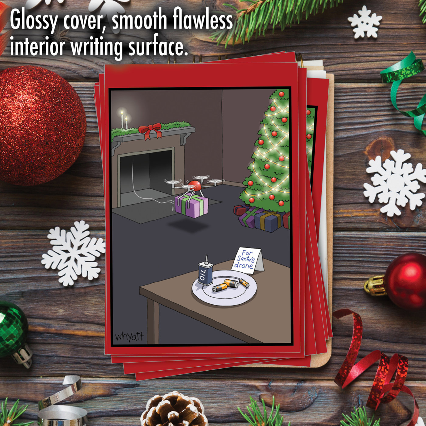 Santa's Drone - Hysterical Merry Christmas Box of 12 Cards, Wholesale