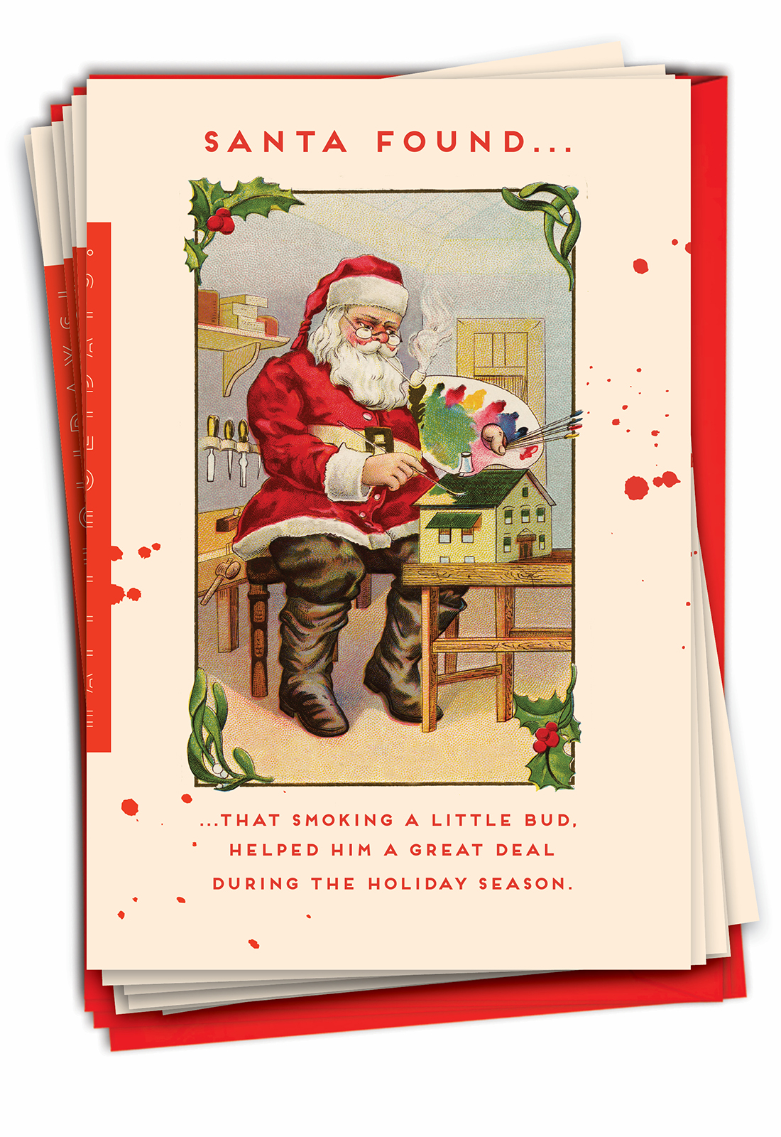 Santa's Little Bud - Hilarious Merry Christmas Box of 12 Cards, Wholesale