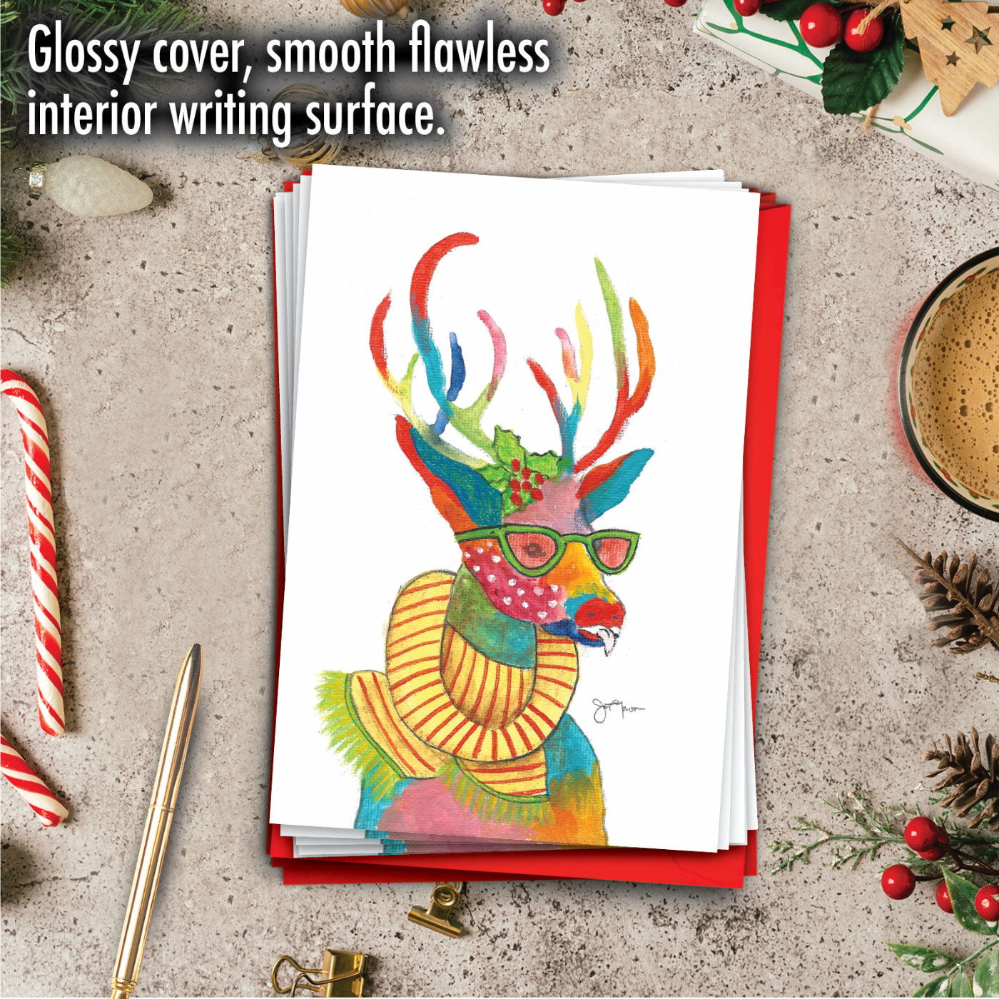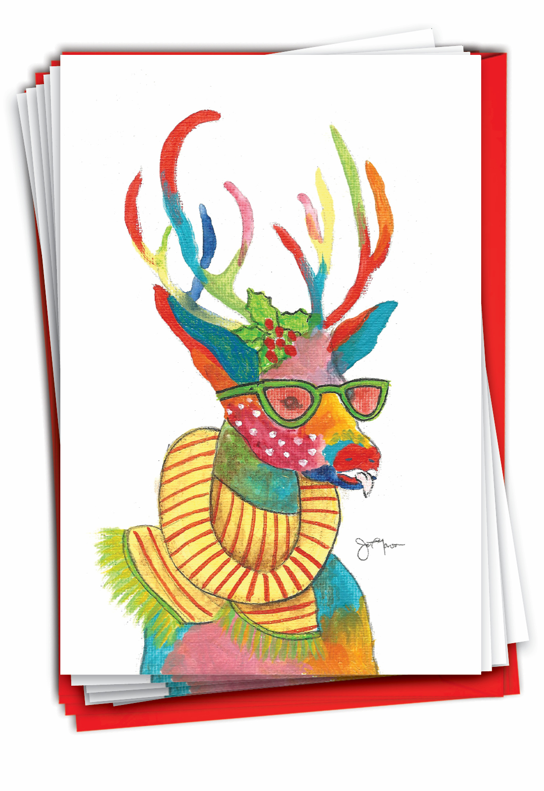 Fancy Reindeer - Scarf - Artful Merry Christmas Box of 12 Cards, Wholesale