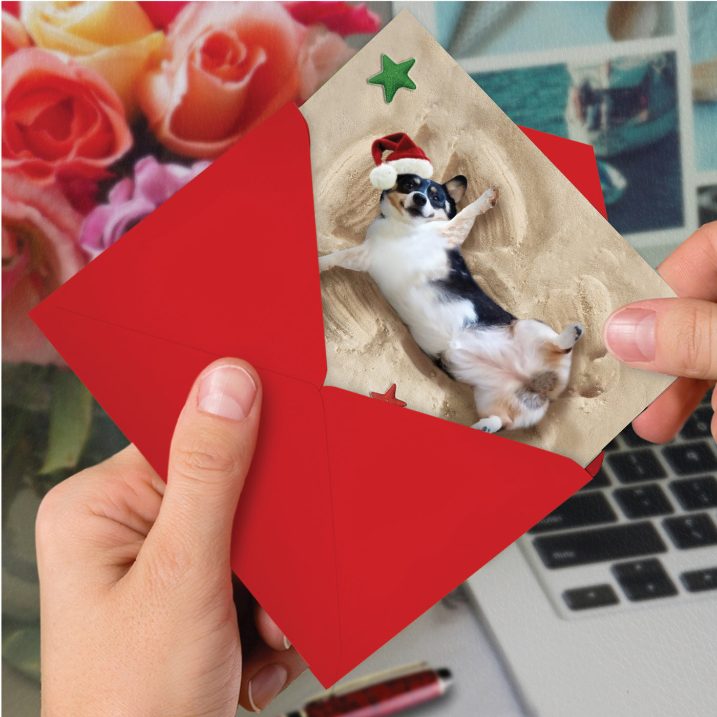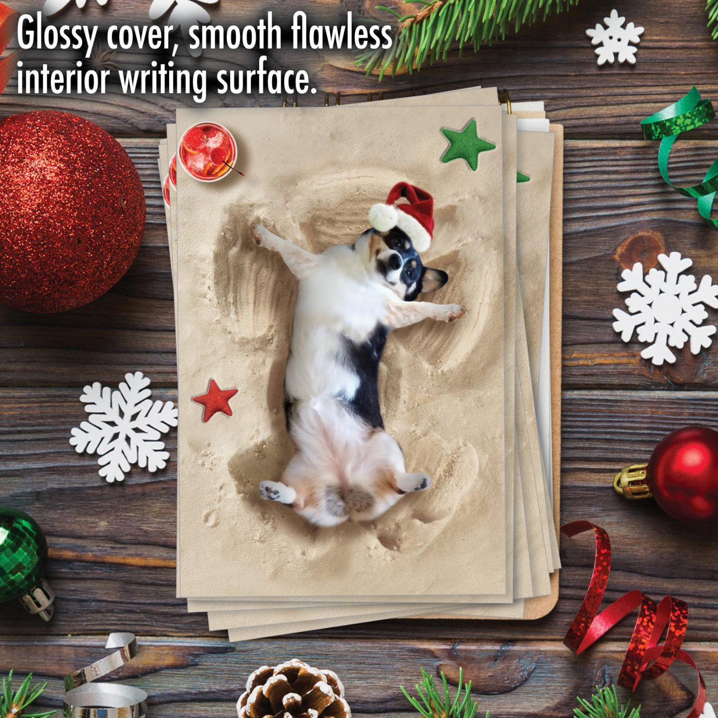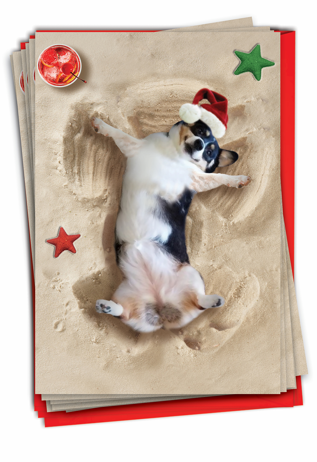 Holiday Sand Angels - Dog - Stylish Merry Christmas Box of 12 Cards, Wholesale