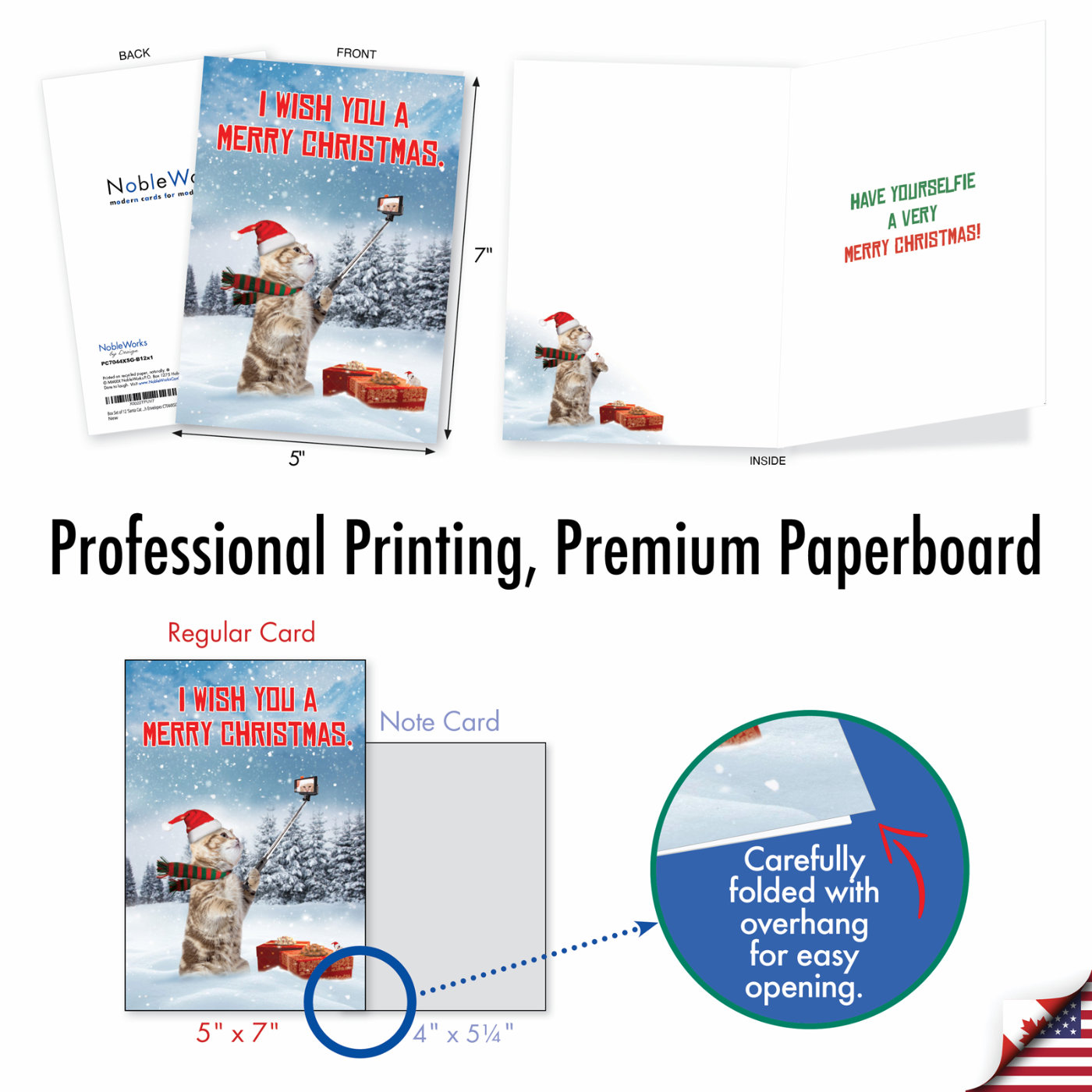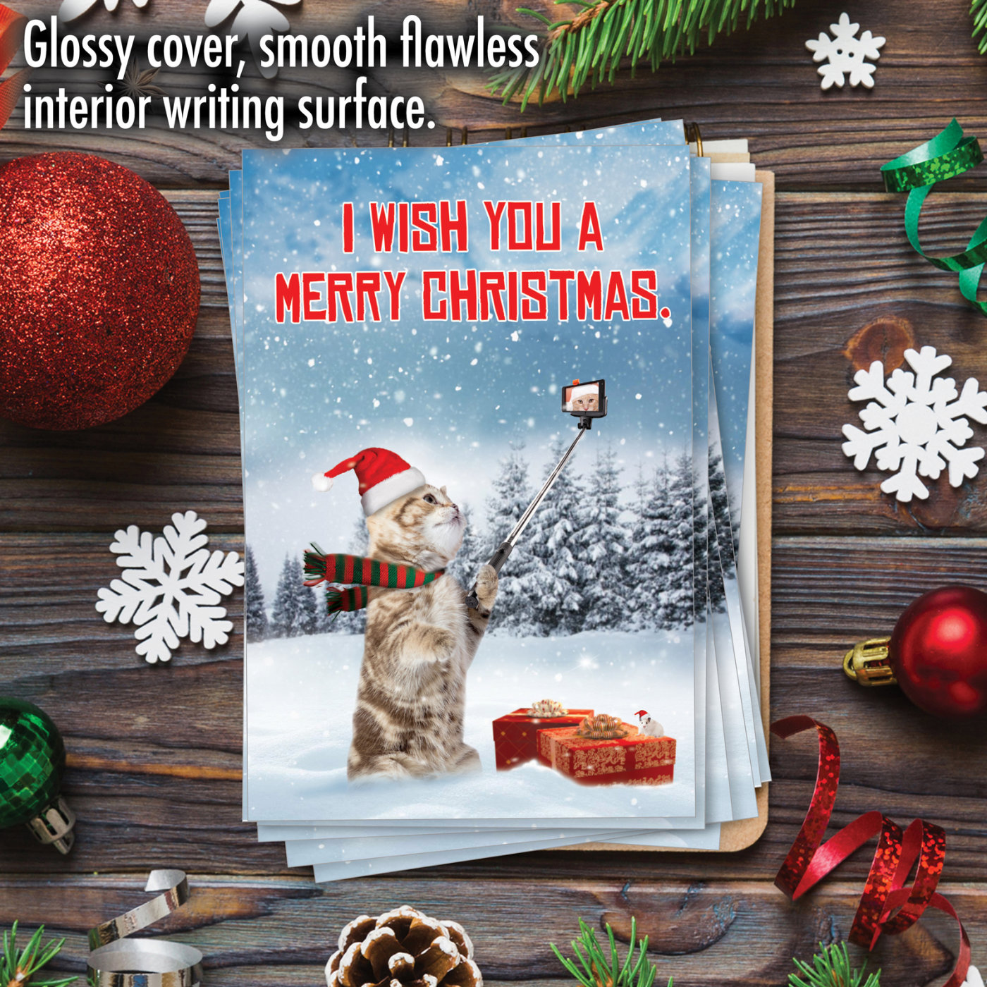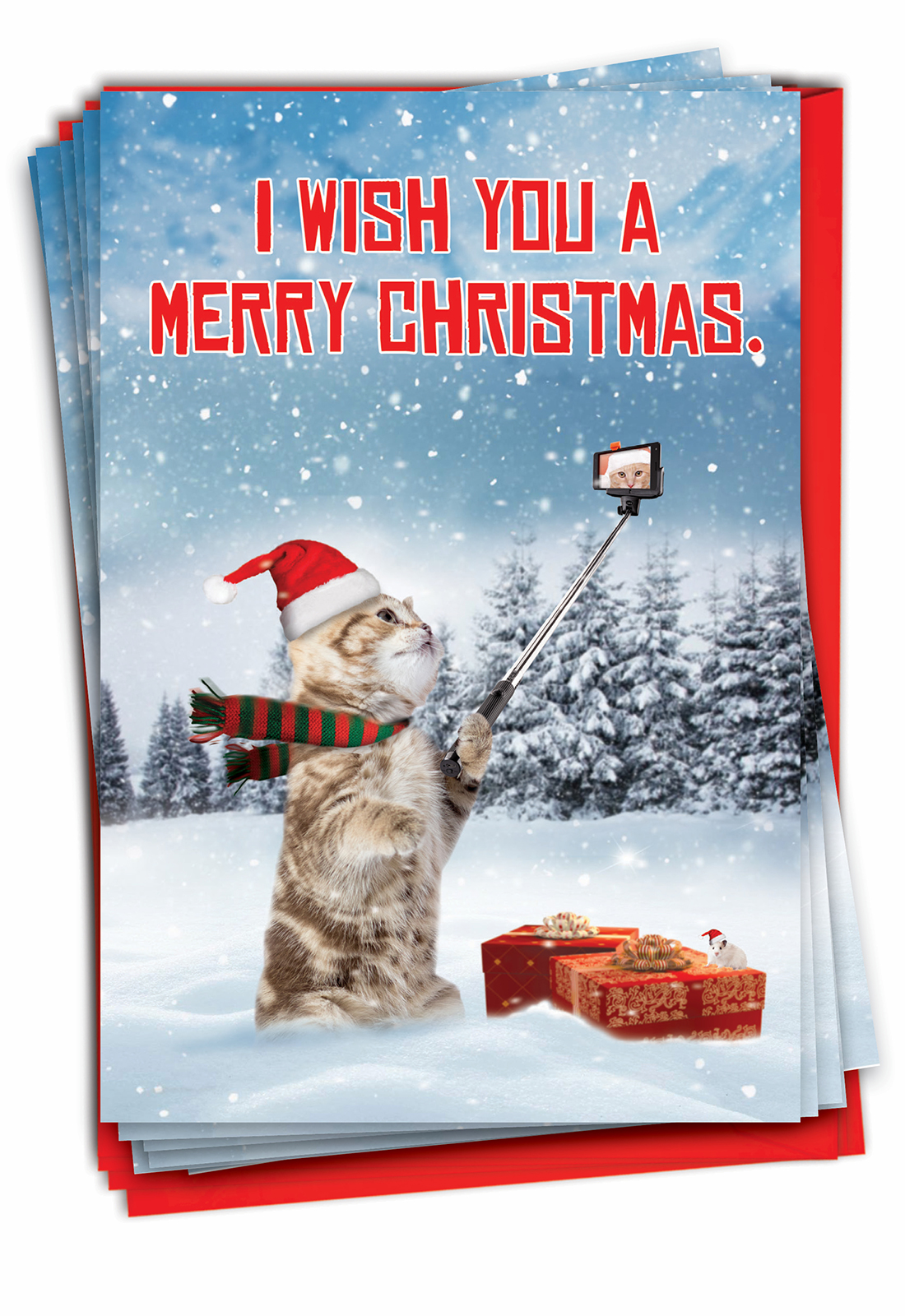 Santa Cat Selfie - Funny Merry Christmas Box of 12 Cards, Wholesale
