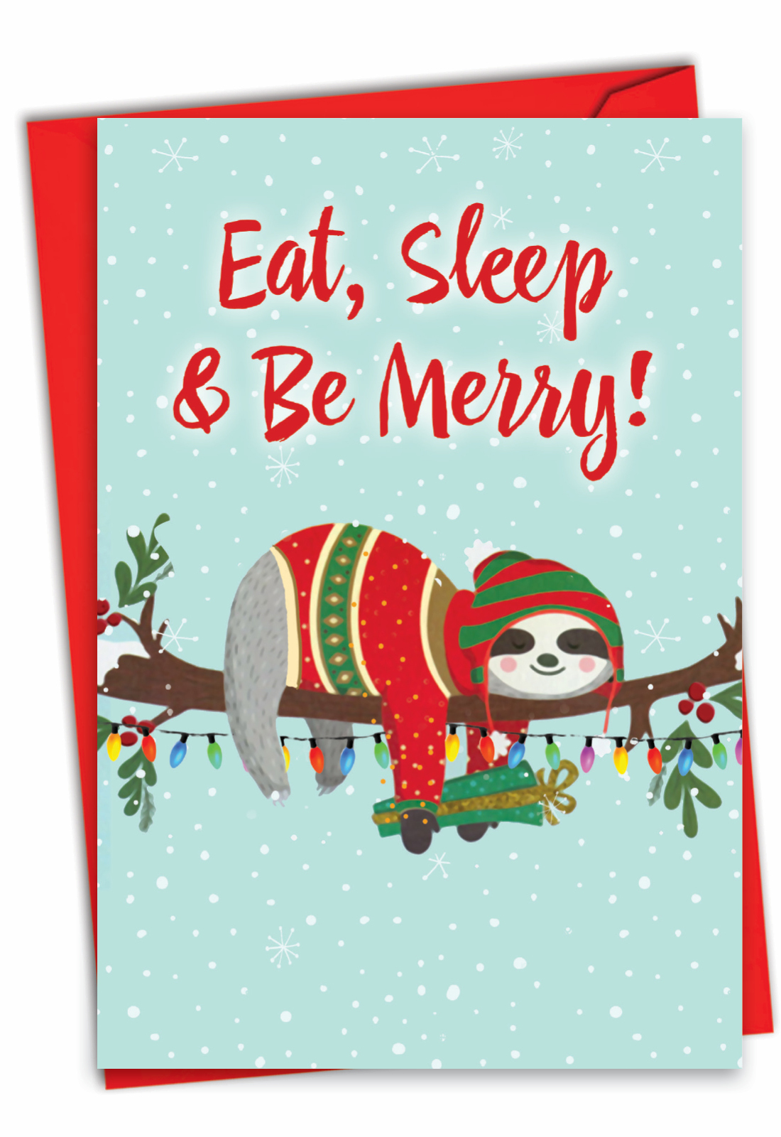 Eat, Sleep and Be Merry - Hilarious Merry Christmas Card, Wholesale