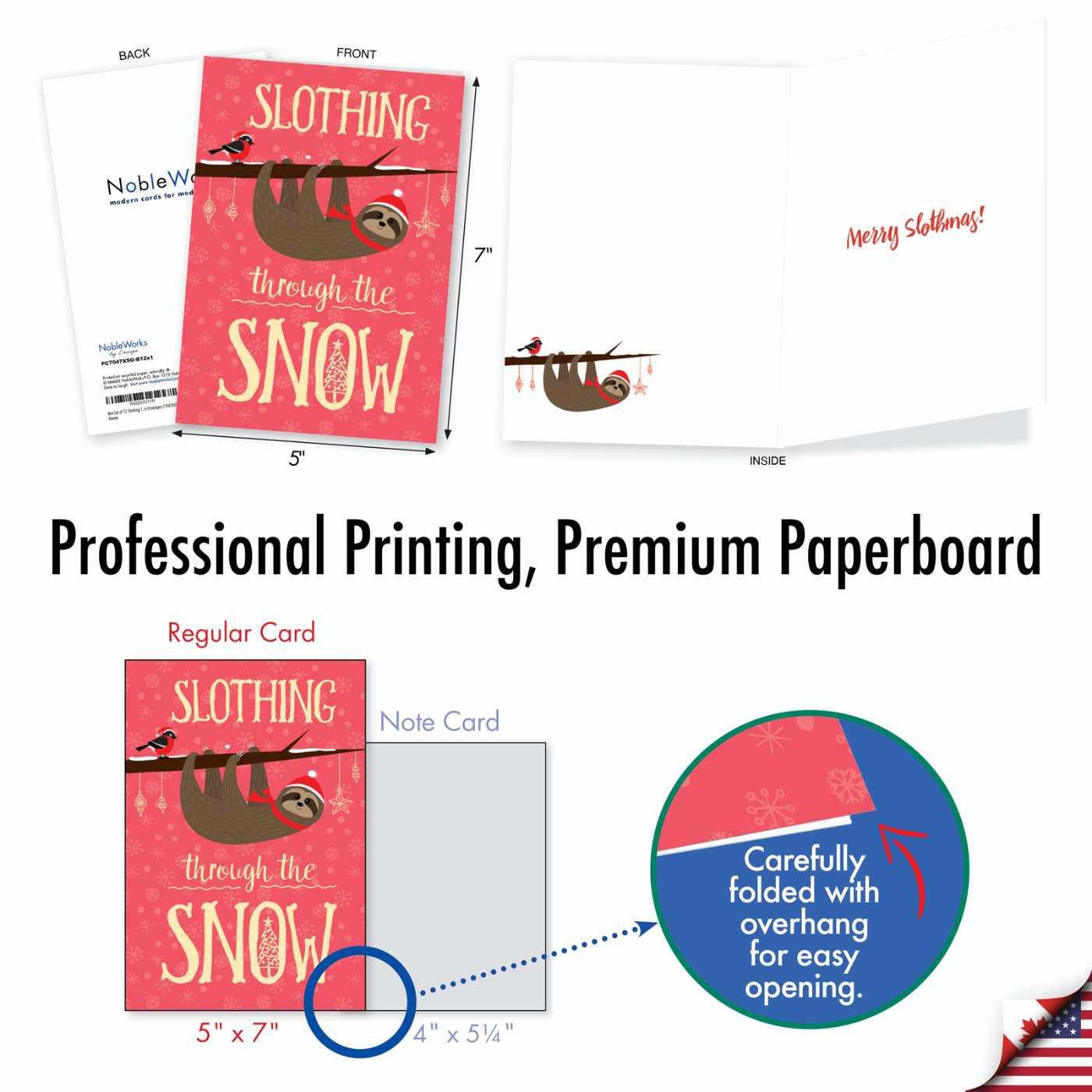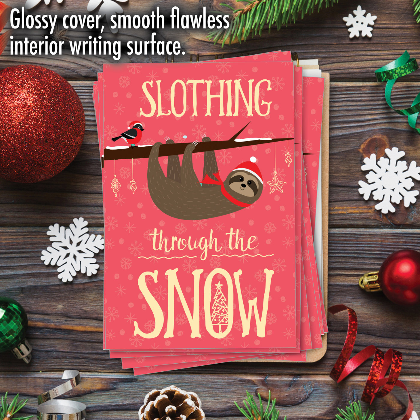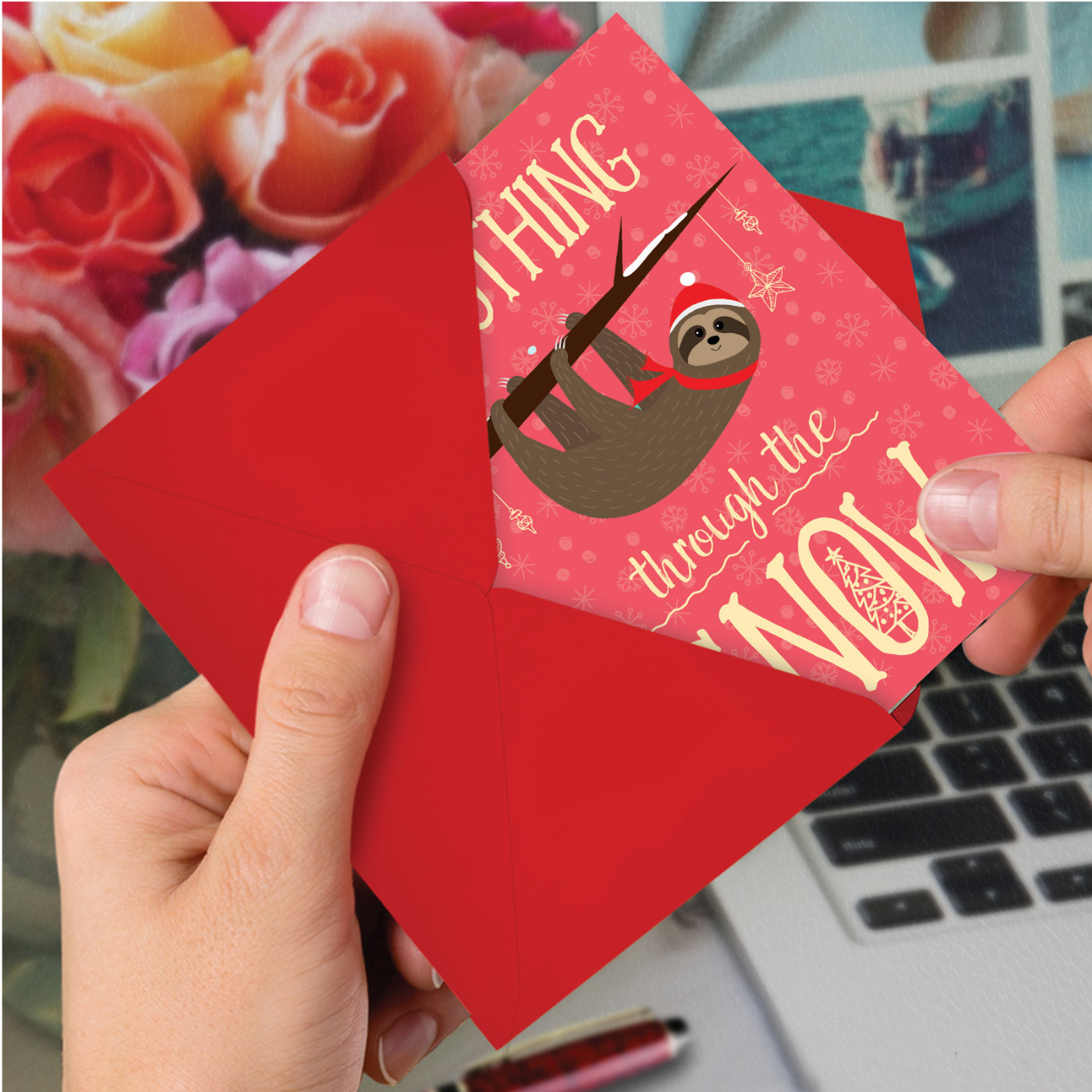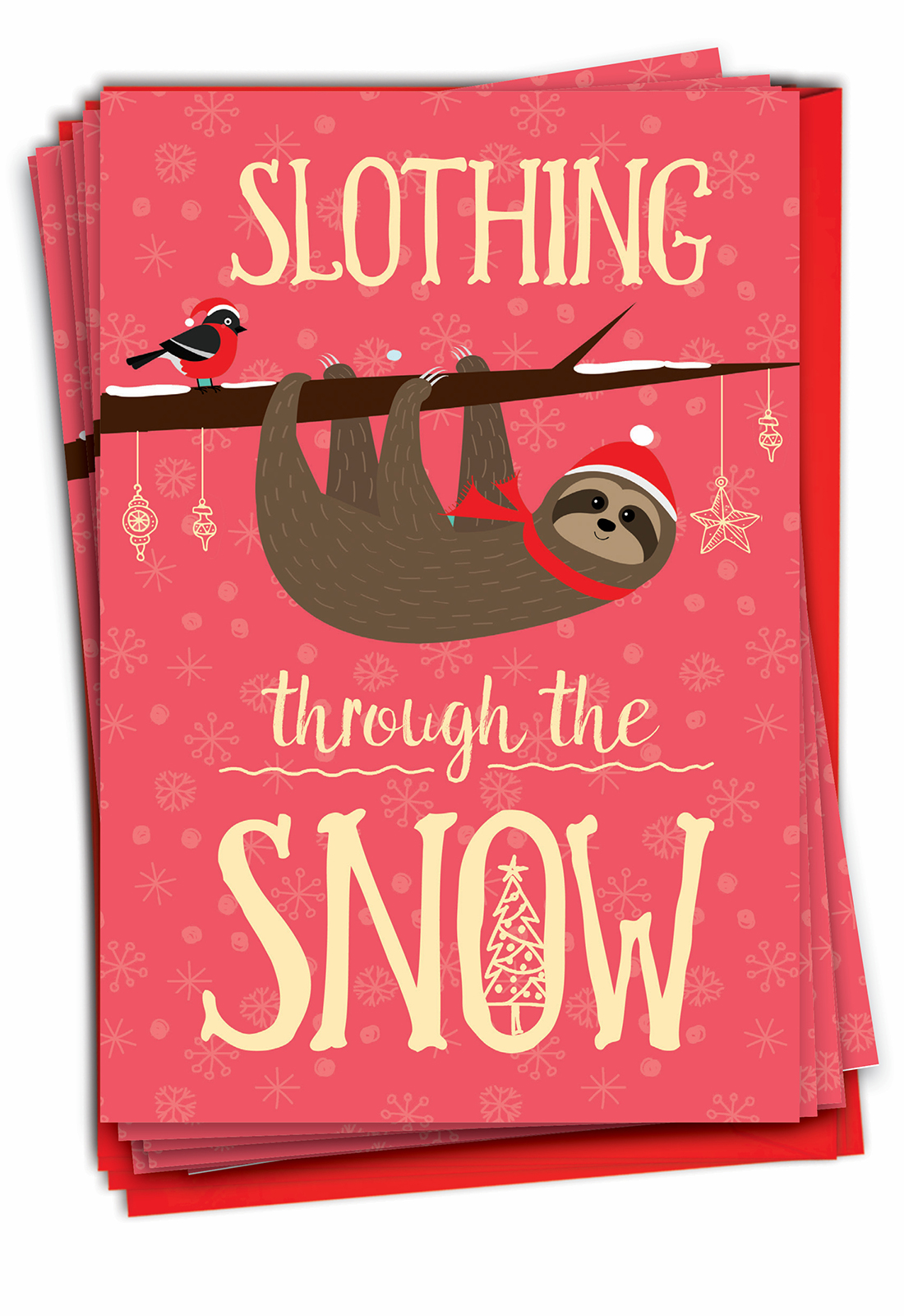 Slothing Through The Snow - Funny Merry Christmas Box of 12 Cards, Wholesale