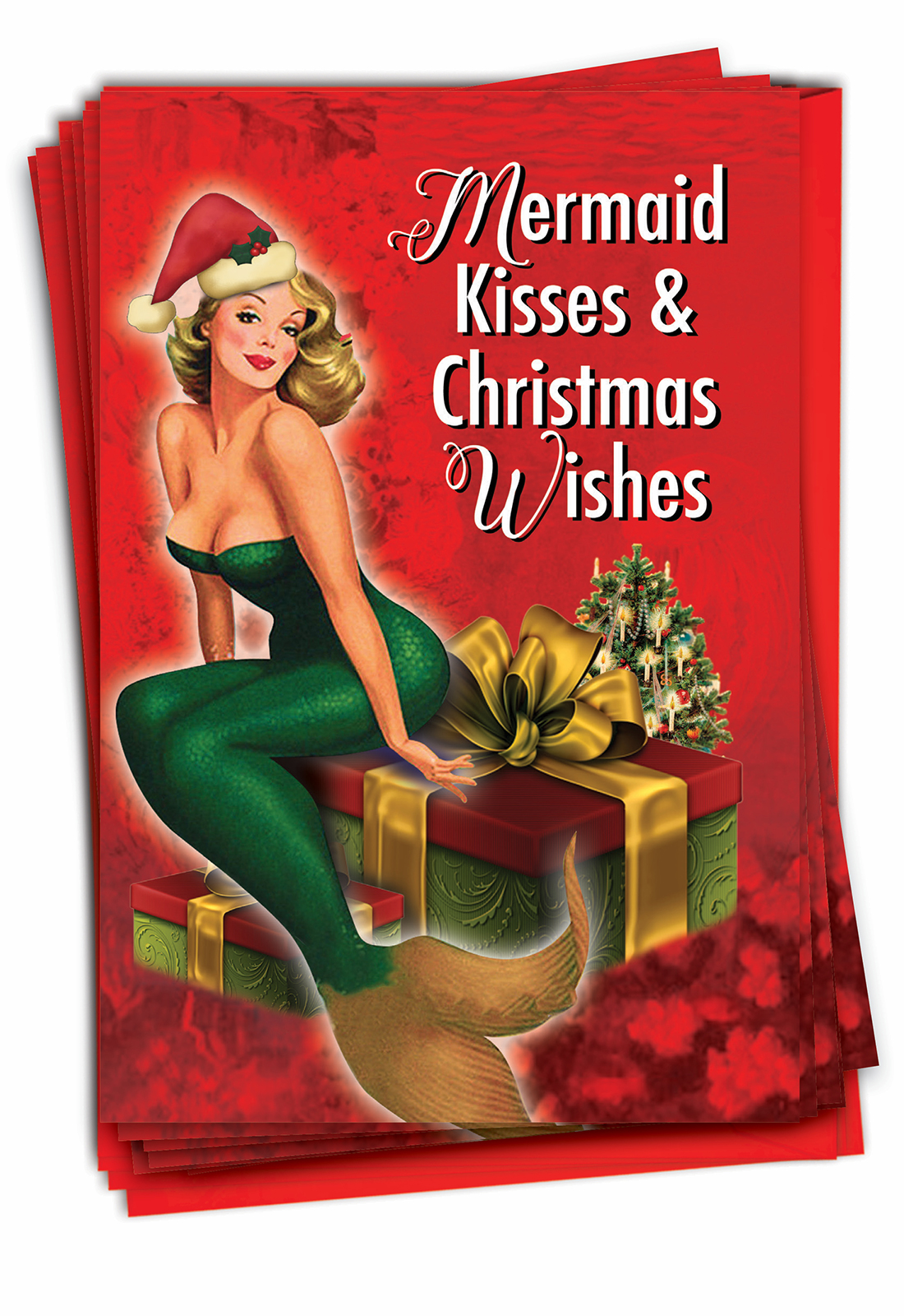 Mermaid Kisses and Wishes - Hysterical Merry Christmas Box of 12 Cards, Wholesale