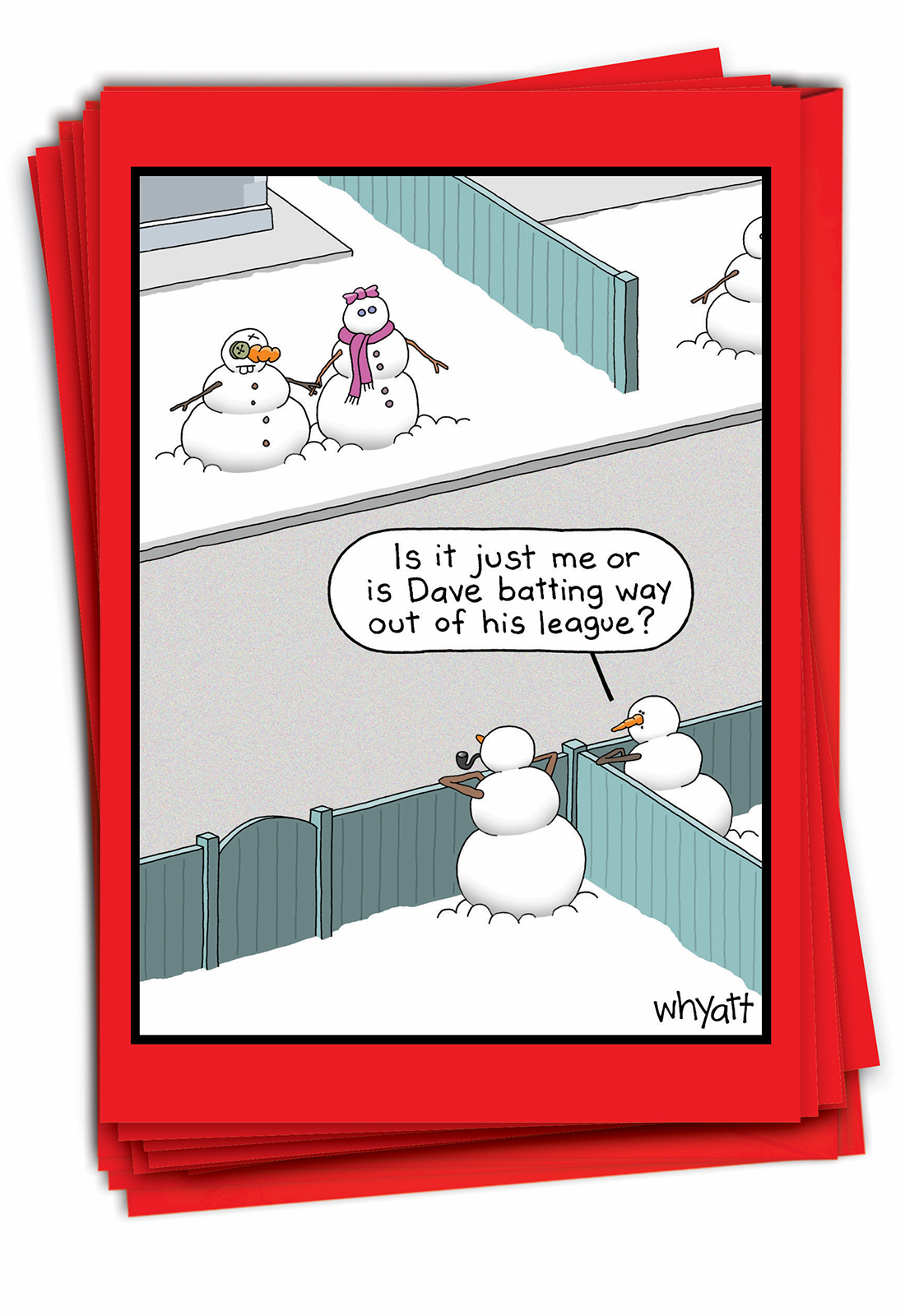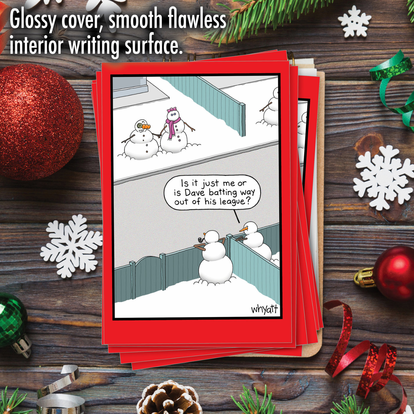 Snowman League - Funny Merry Christmas Box of 12 Cards, Wholesale