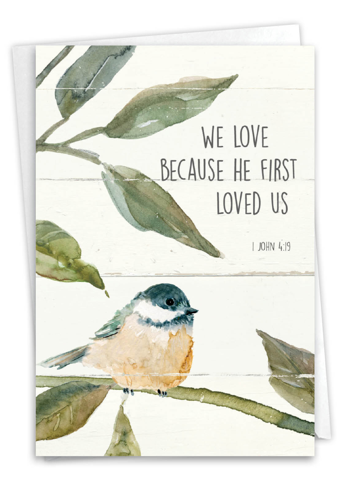 Scripture Birds - 1 John 4:19 - Stylish Anniversary Card, Wholesale