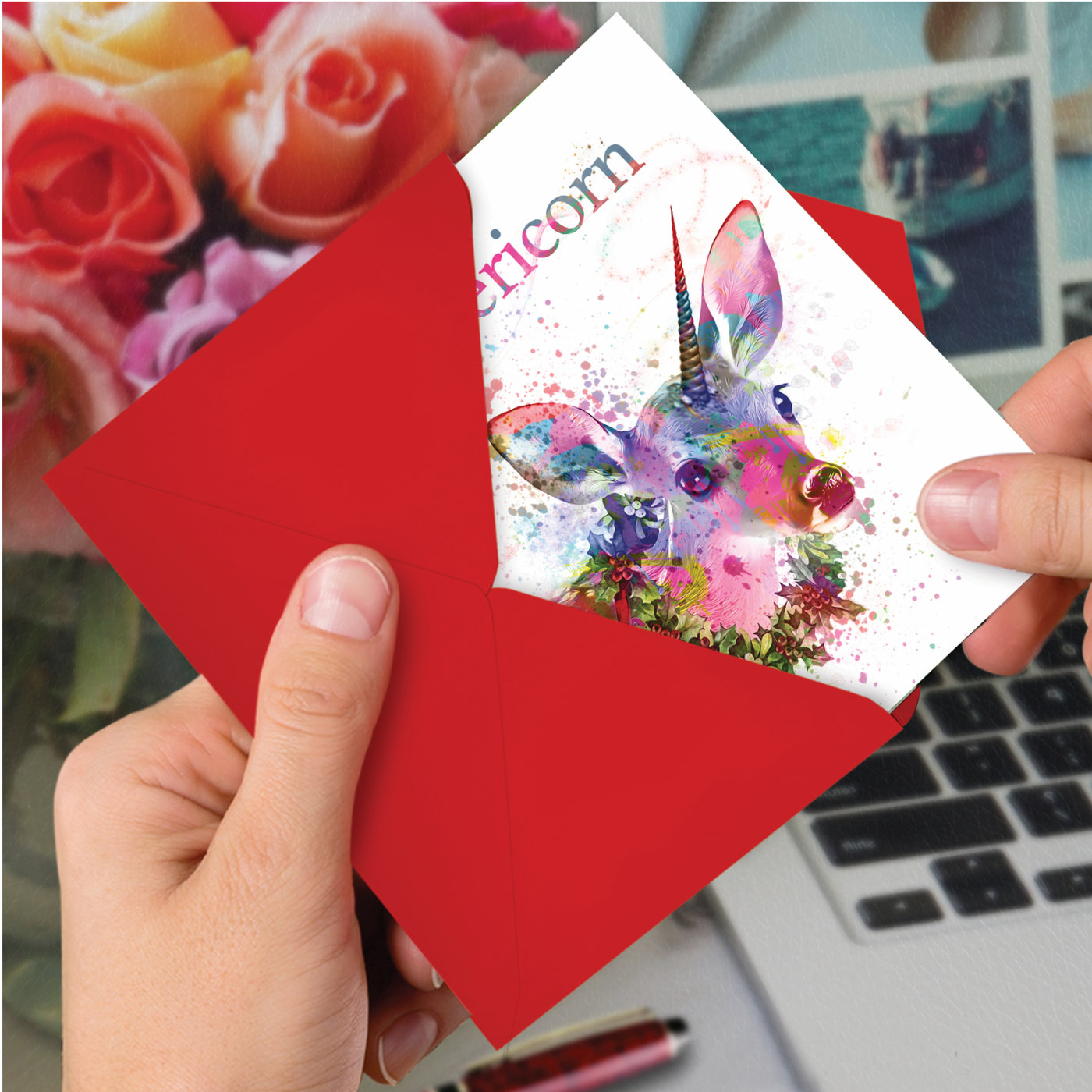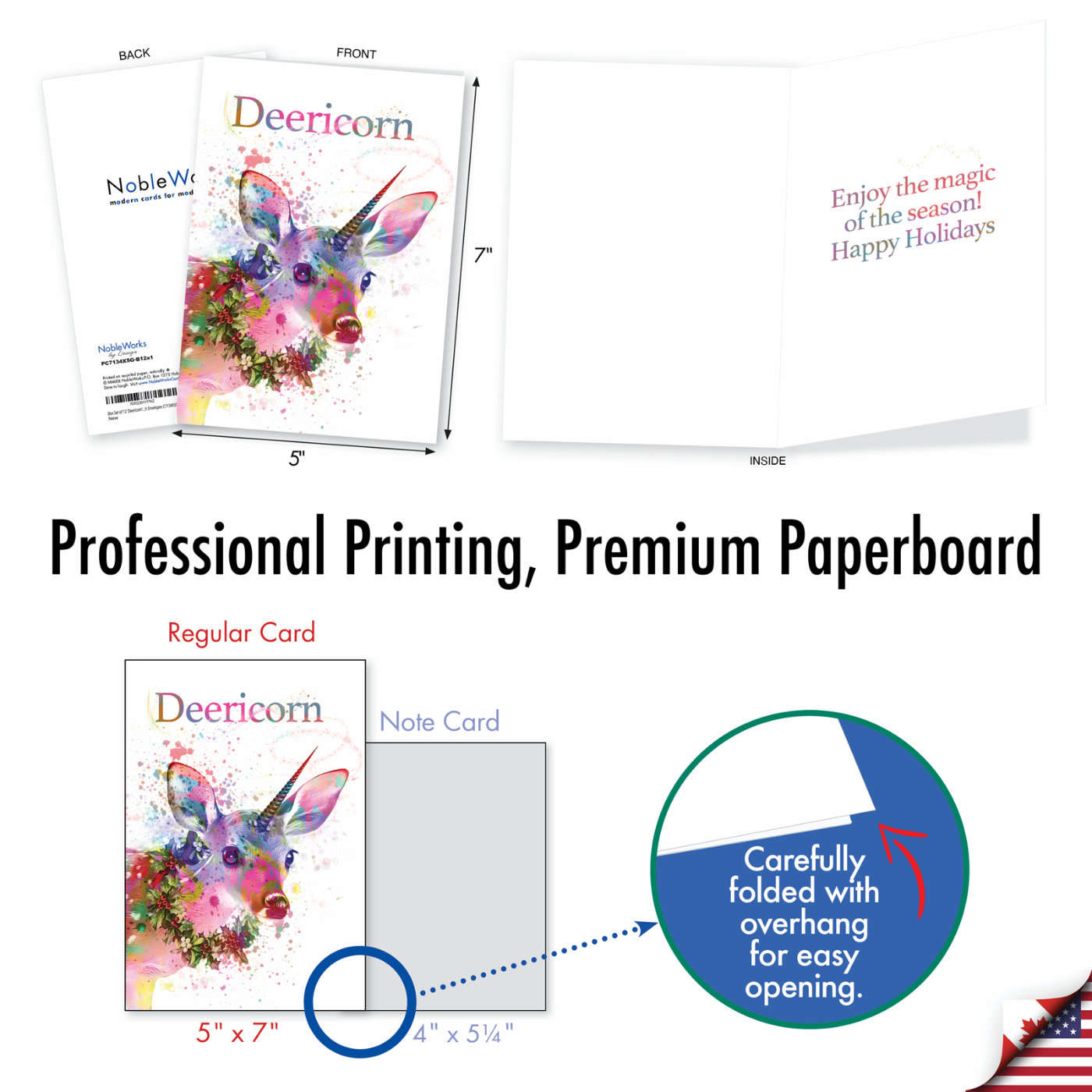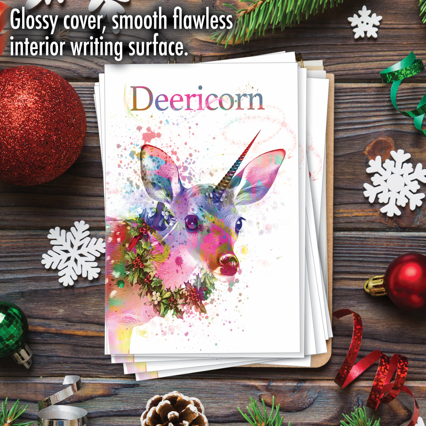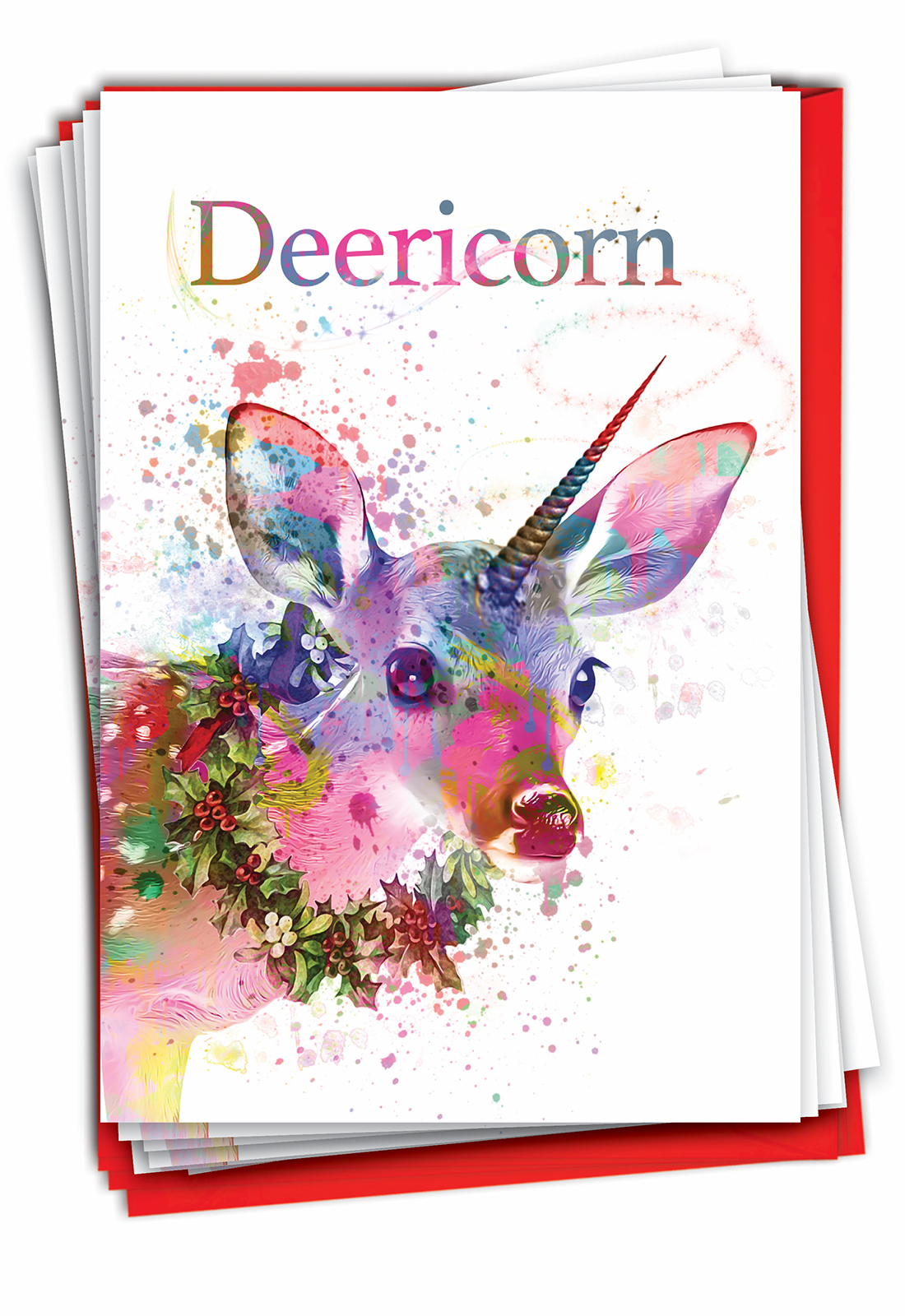 Deericorn - Stylish Merry Christmas Box of 12 Cards, Wholesale