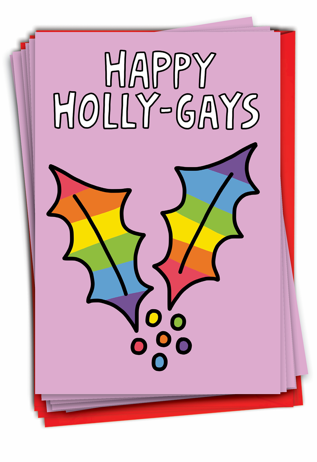 Happy Holly-Gays - Hilarious Merry Christmas Box of 12 Cards, Wholesale