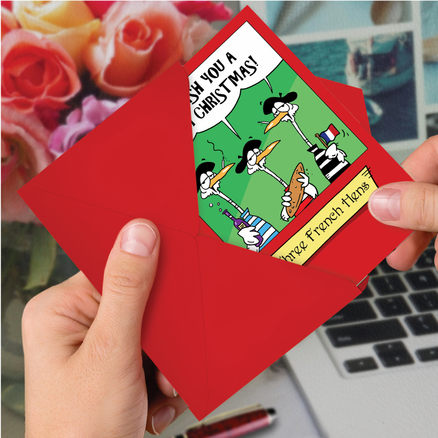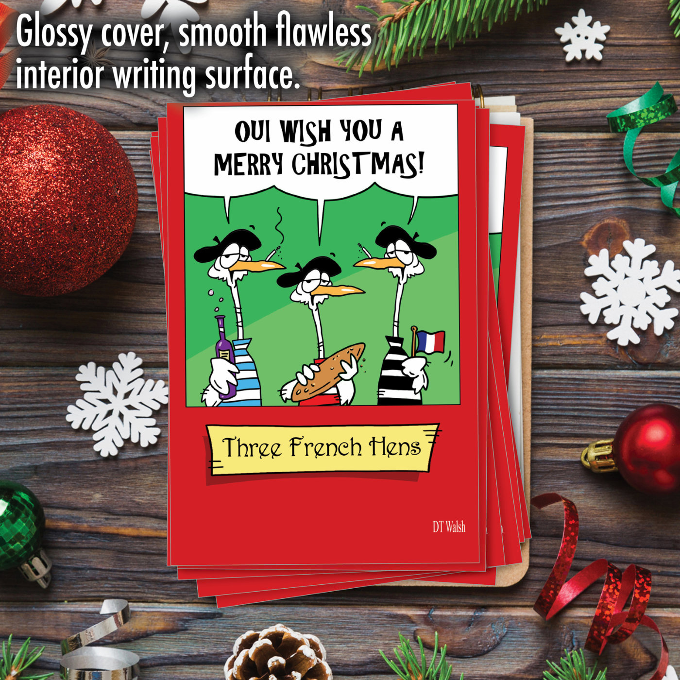 Three French Hens - Hysterical Merry Christmas Box of 12 Cards, Wholesale