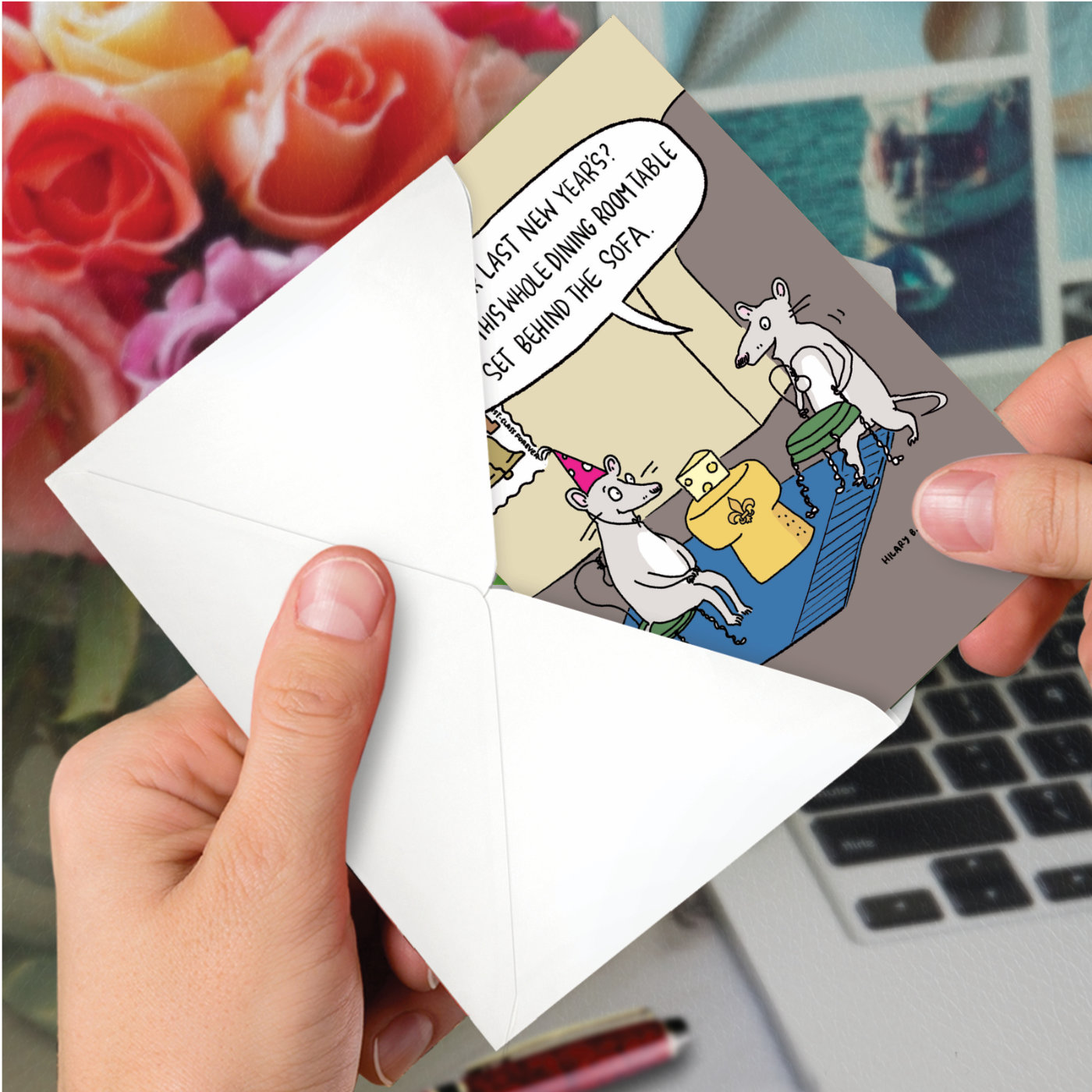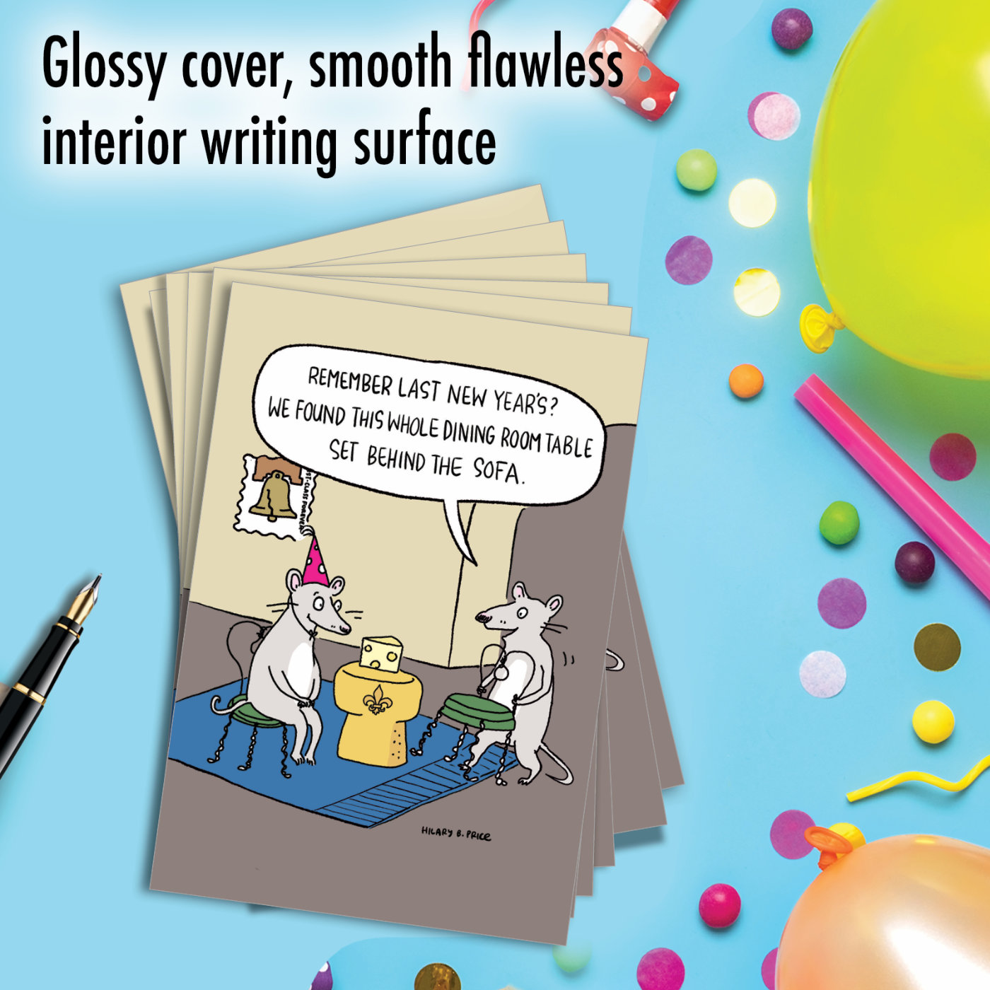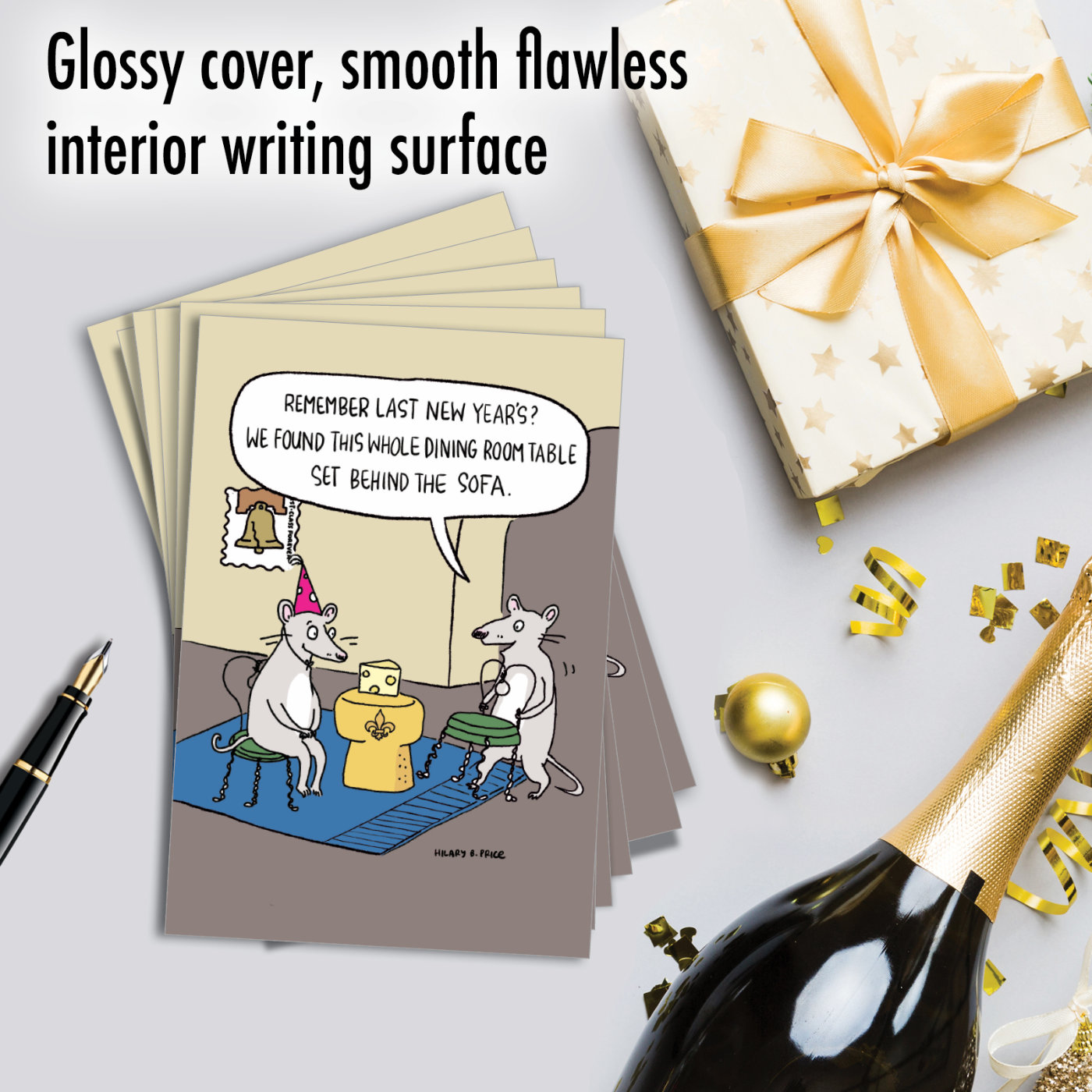 Mice Dining - Funny New Year Box of 12 Cards, Wholesale