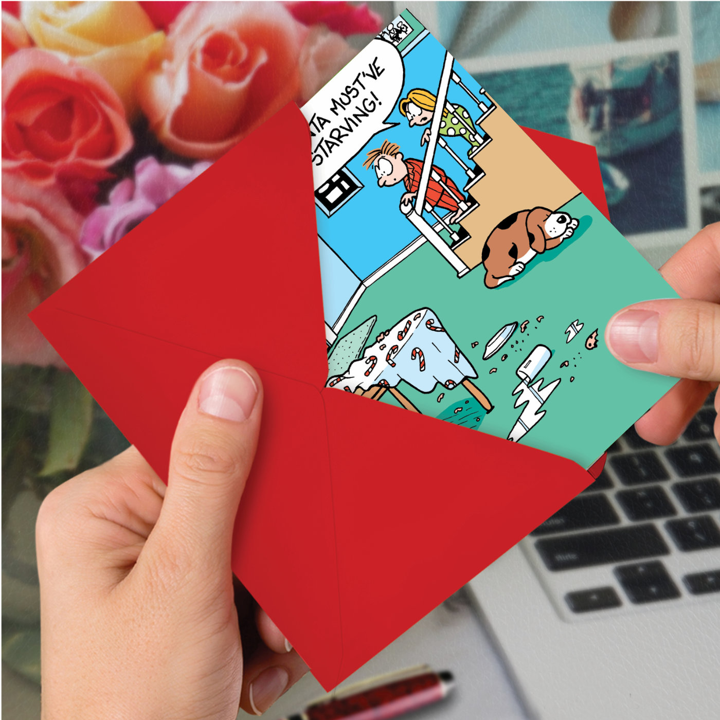 Starving Santa - Hilarious Merry Christmas Box of 12 Cards, Wholesale