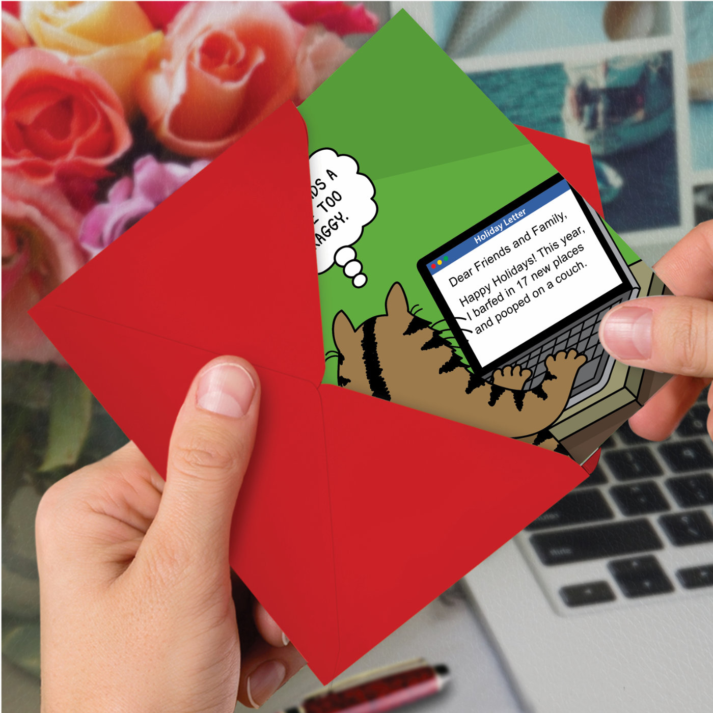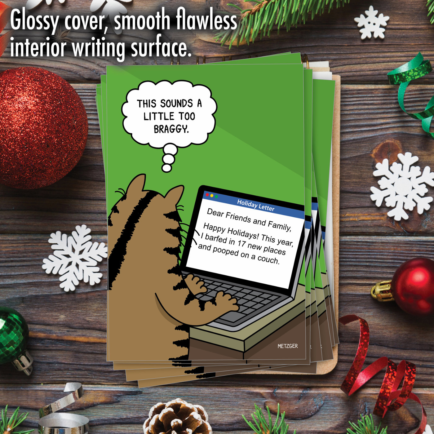 Braggy Cat - Humorous Merry Christmas Box of 12 Cards, Wholesale