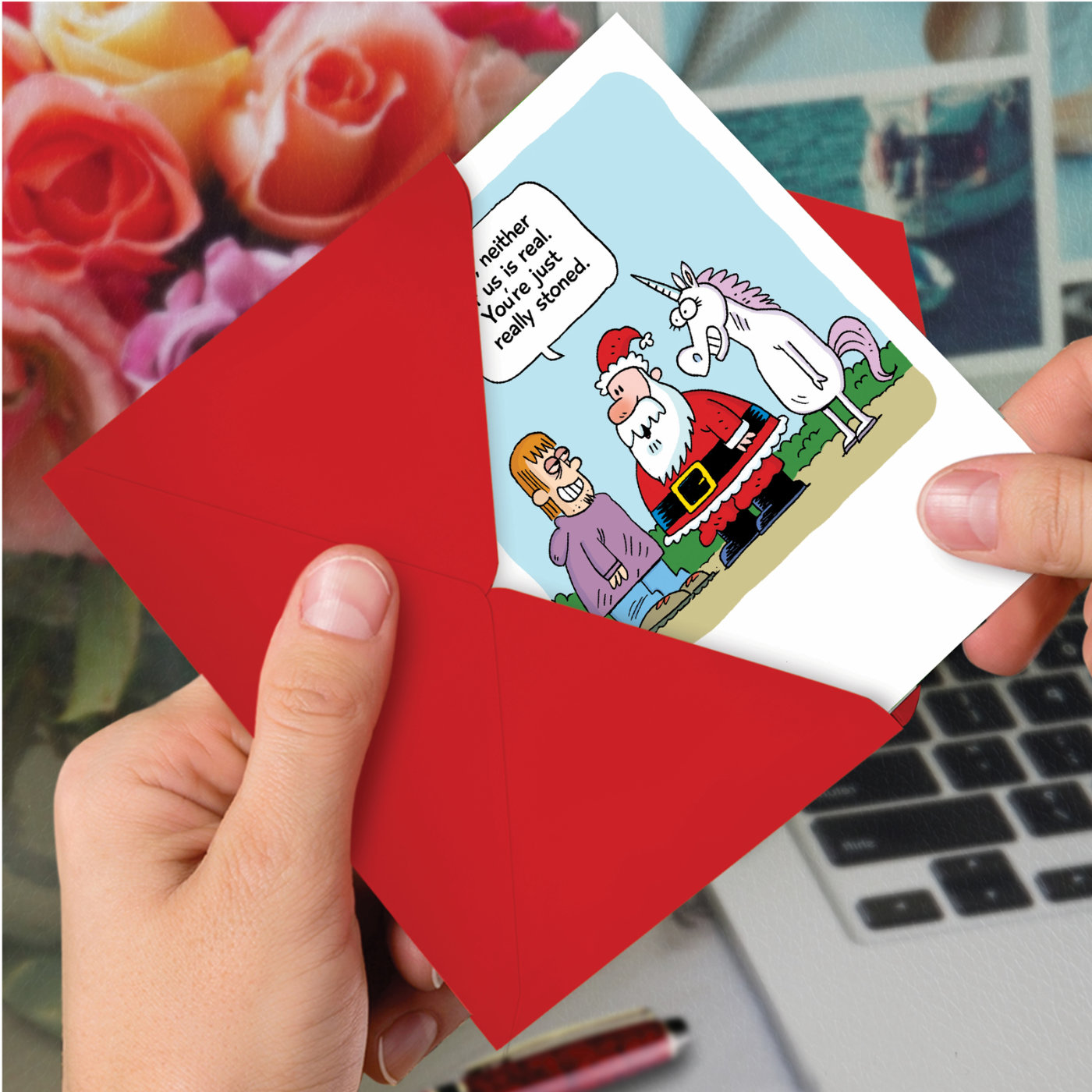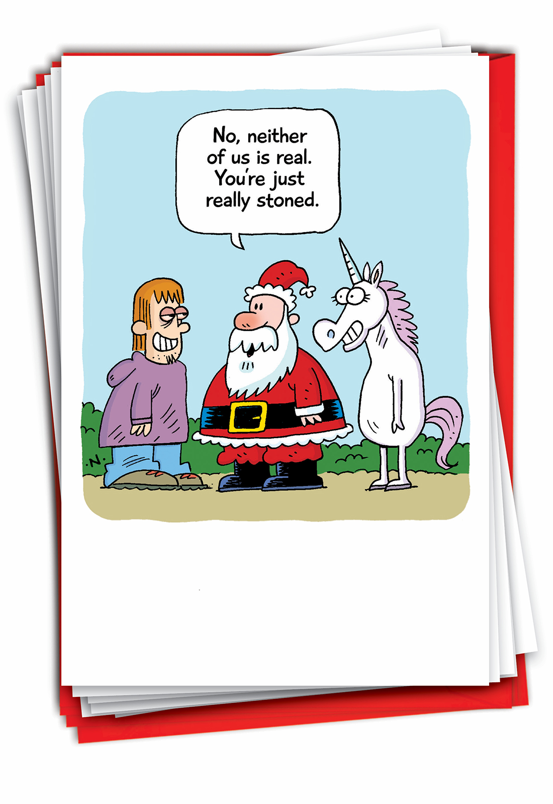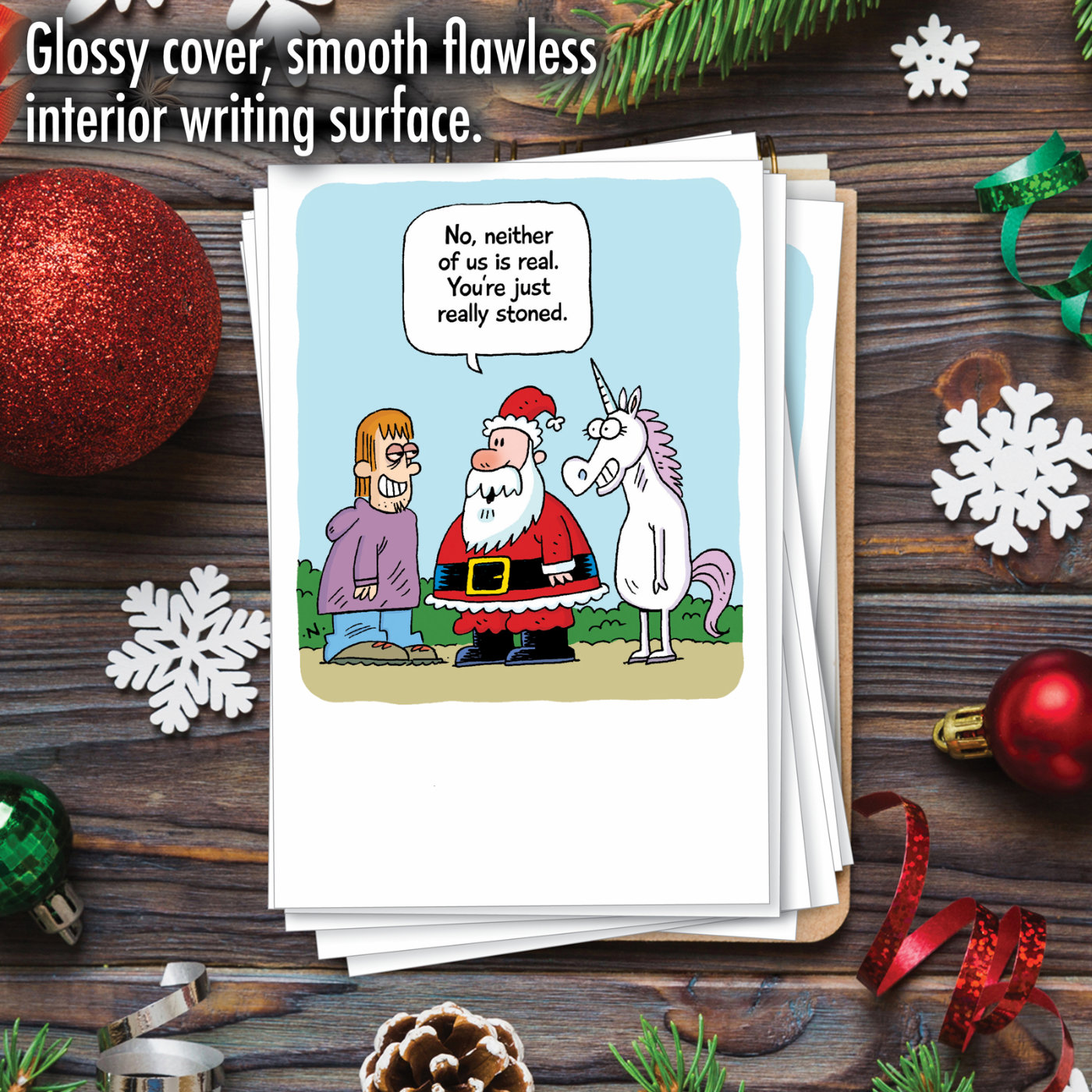 Santa and Unicorn - Hysterical Merry Christmas Box of 12 Cards, Wholesale