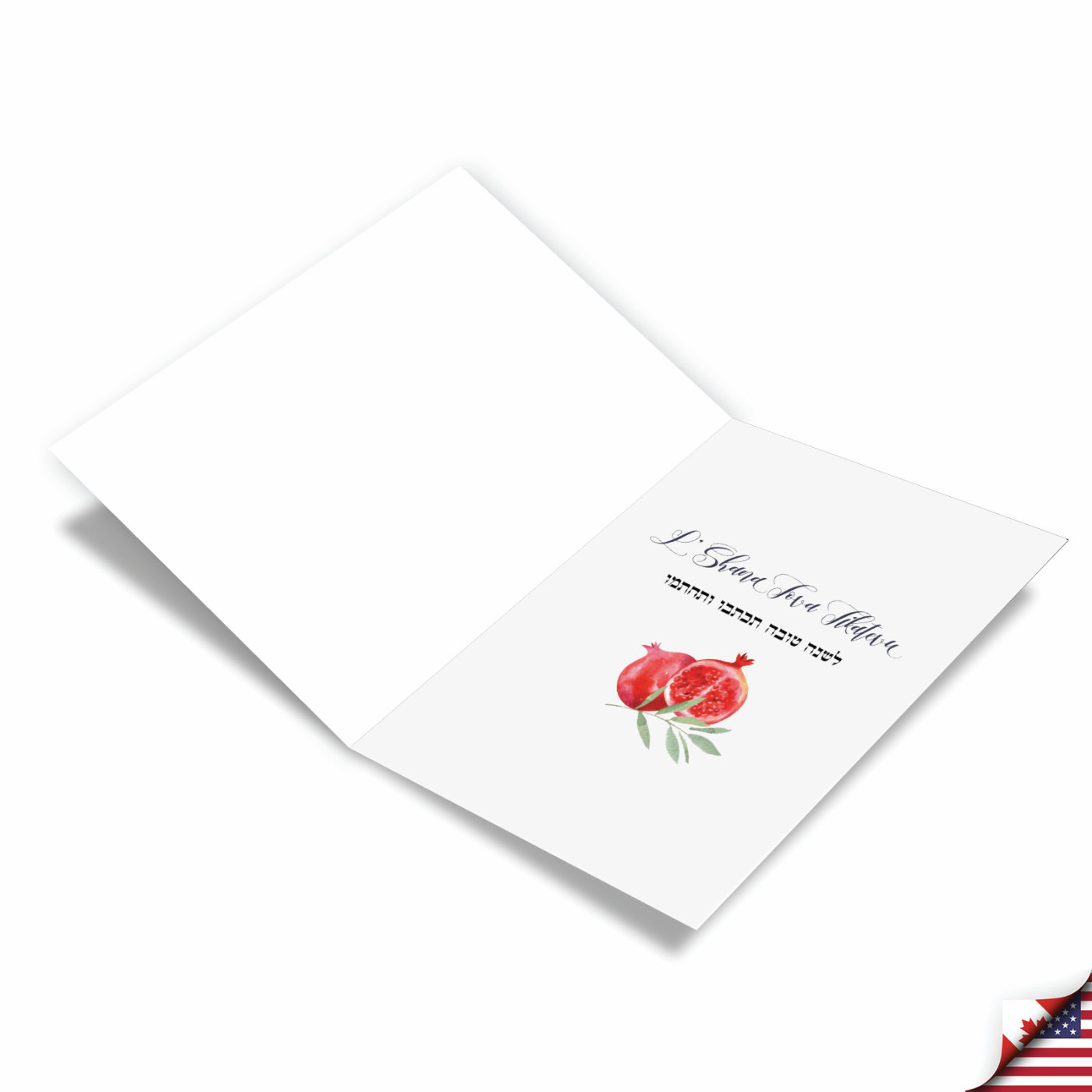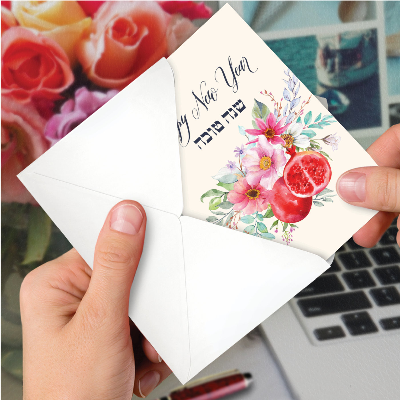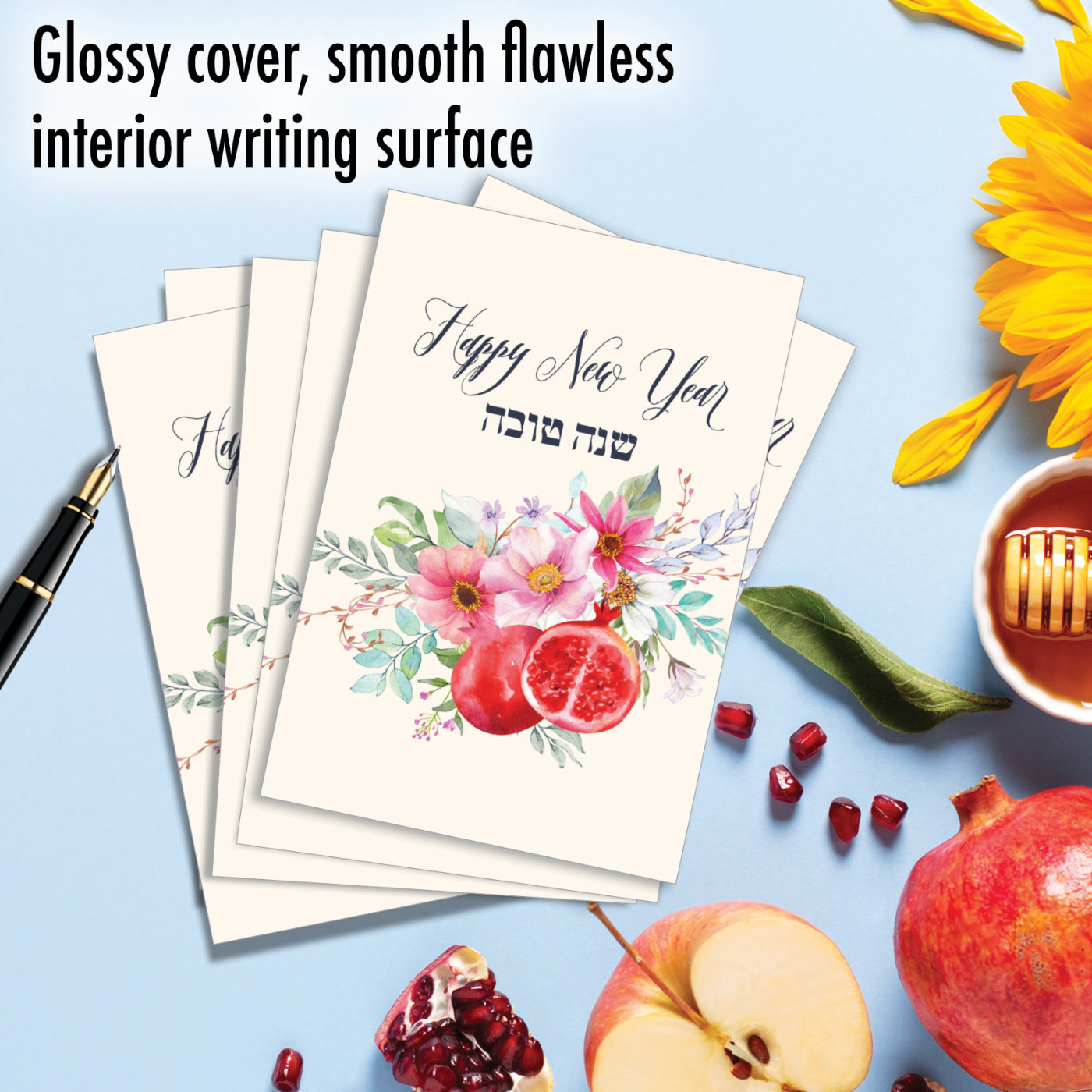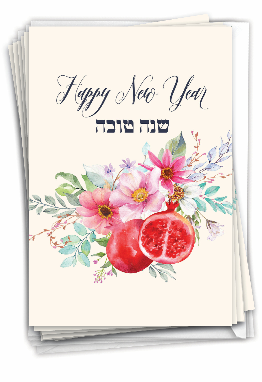 Pomegranates and Flowers - Artful Rosh Hashanah Box of 12 Cards, Wholesale