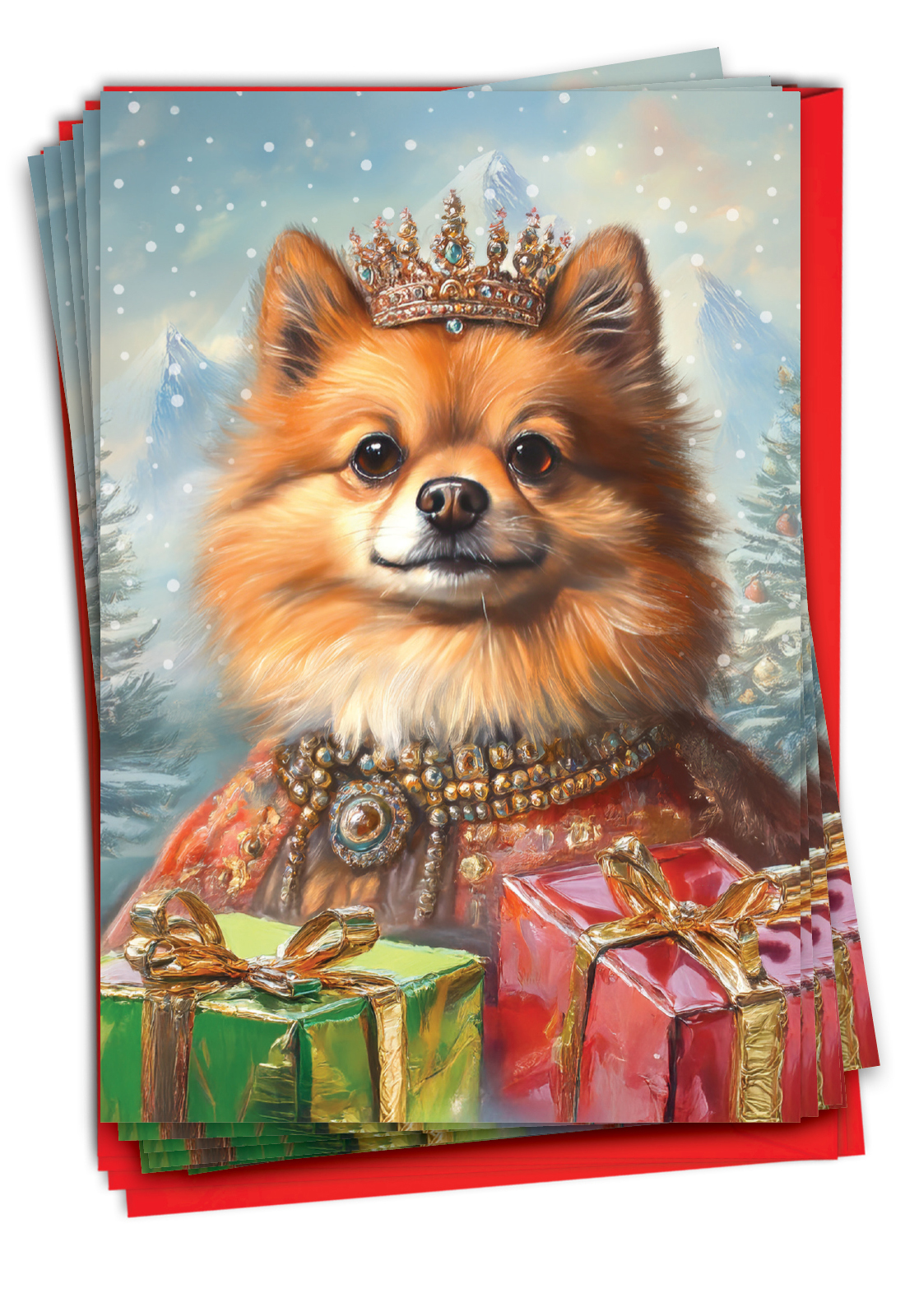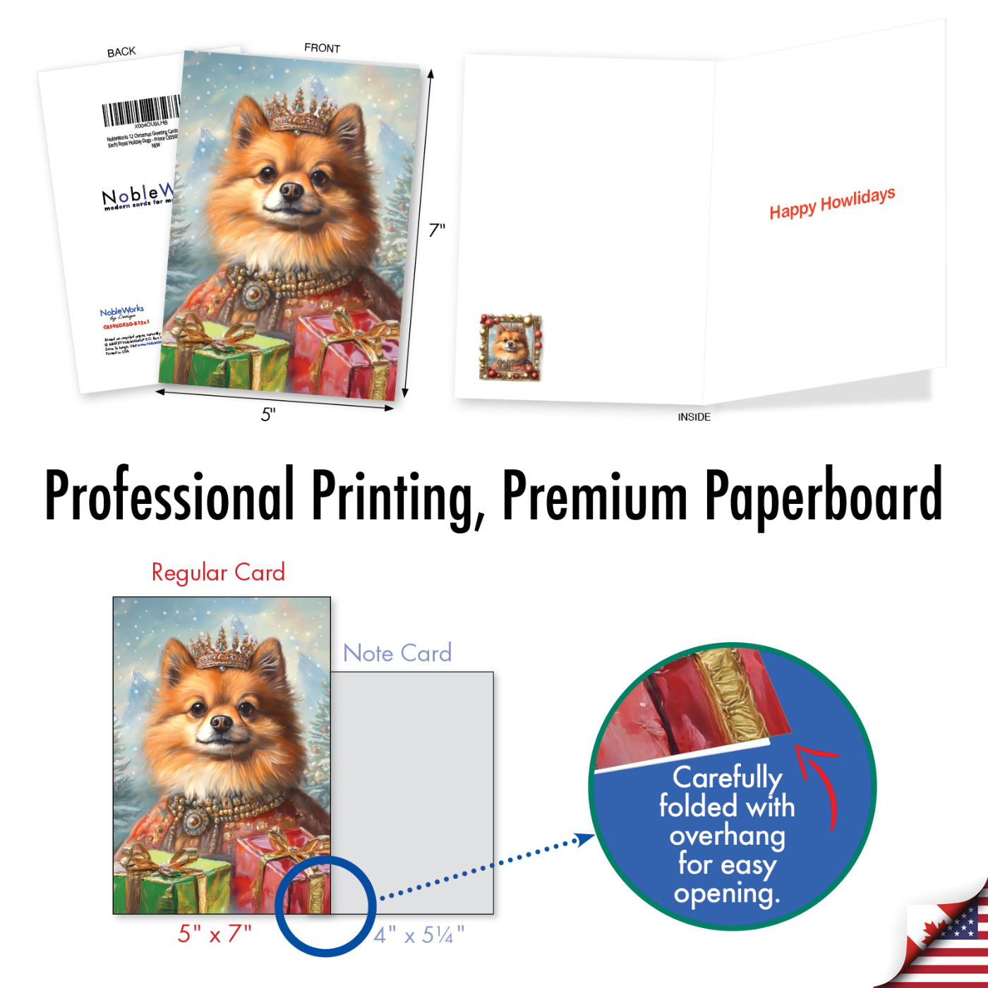 Royal Holiday Dogs - Prince - Stylish Merry Christmas Box of 12 Cards, Wholesale