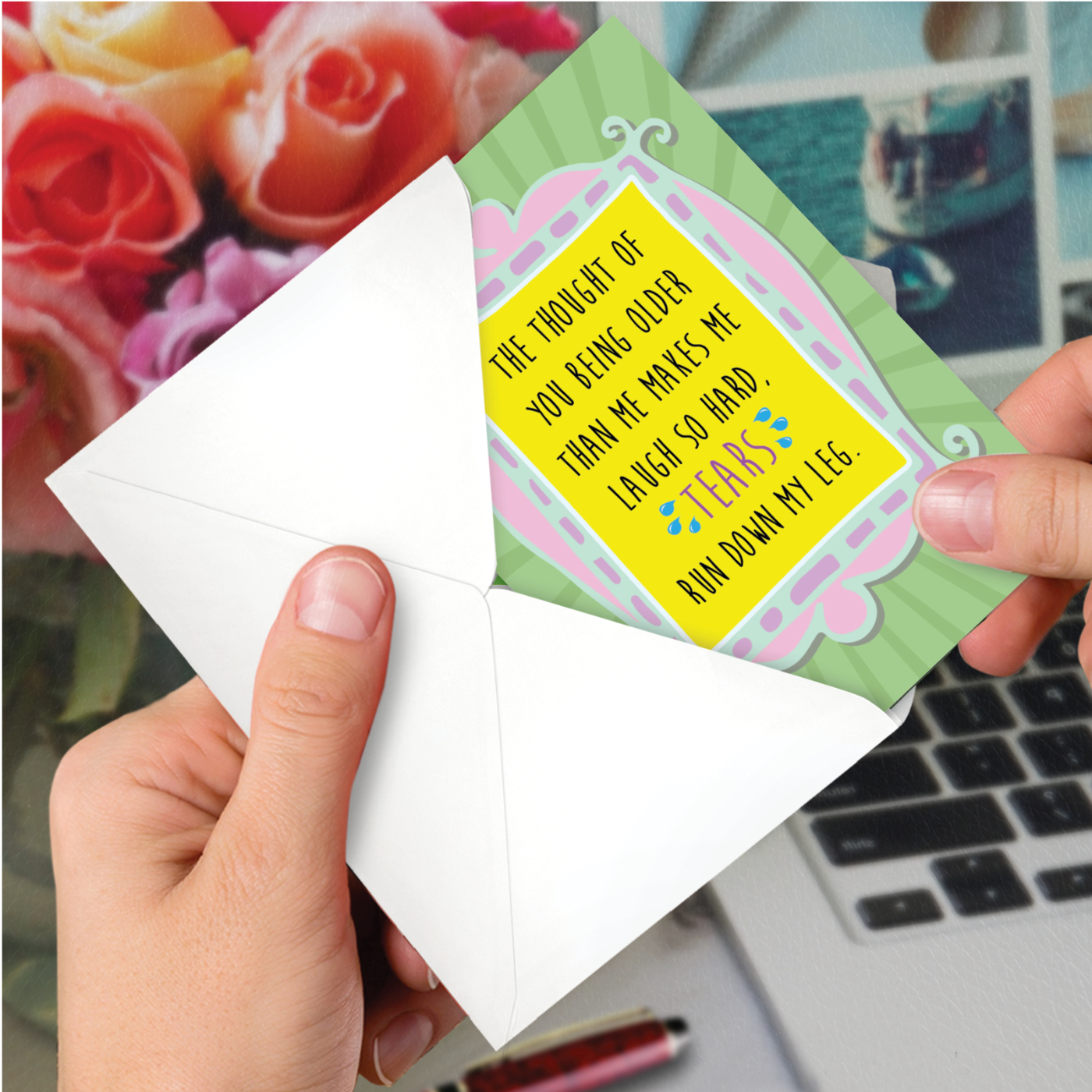 The thought of you being older than me makes me laugh so hard, tears run down my leg.